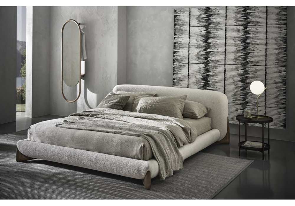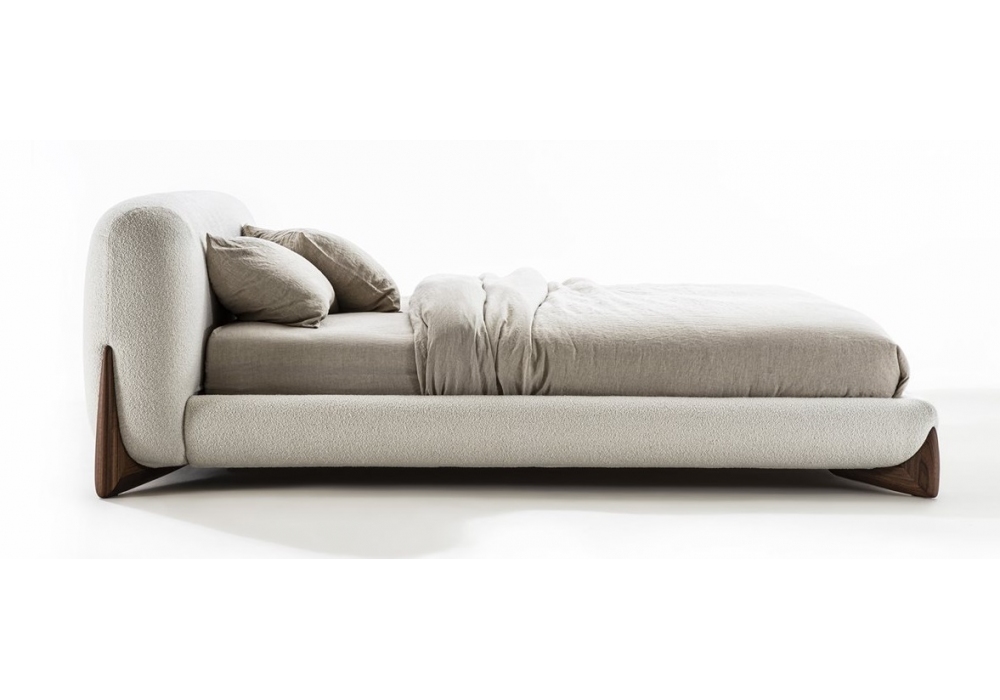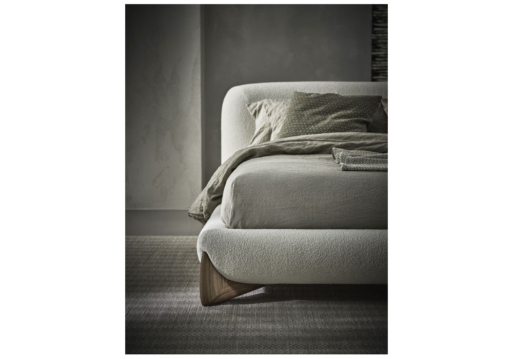 Softbay firmato da Giuseppe Viganò per Porada è un letto con quattro piedi in massello di noce canaletta e testata e giroletto con rivestimento in tessuto. Struttura interna in multistrato di betulla e massello di abete con imbottitura in poliuretano espanso a quote differenziate.