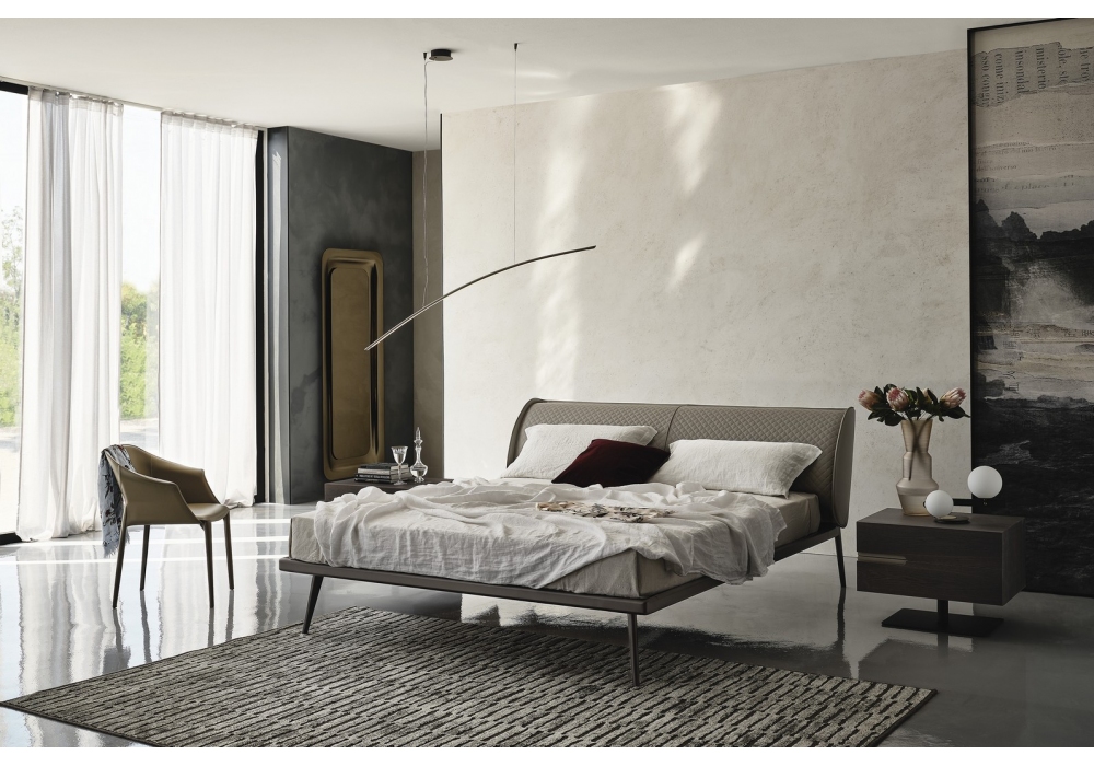 Ayrton firmato da Andrea Lucatello per Cattelan Italia è un letto con testiera imbottita con rivestimento in pelle o tessuto. Struttura in acciaio goffrato. Rete inclusa, disponibile in diverse dimensioni.