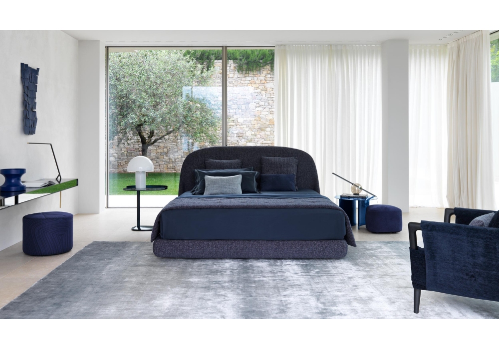 Taormina firmato da Flou è un letto con testiera e giroletto imbottiti. Il rivestimento della testata, in tessuto o pelle sfoderabile, è caratterizzato dalla cucitura a vista che ne definisce la curva. Base a molle insacchettate.