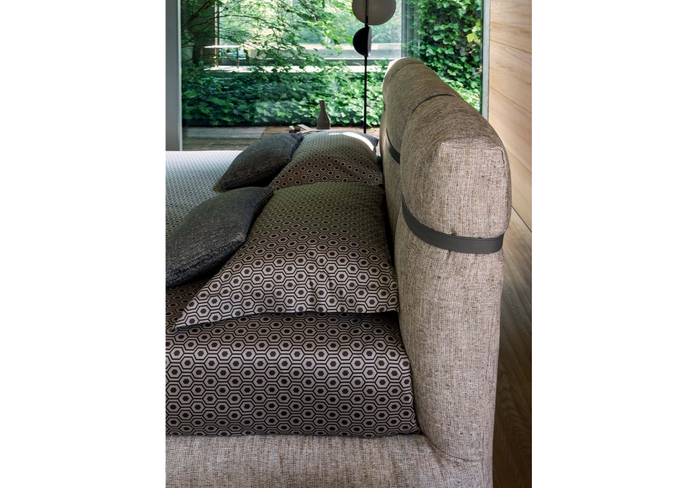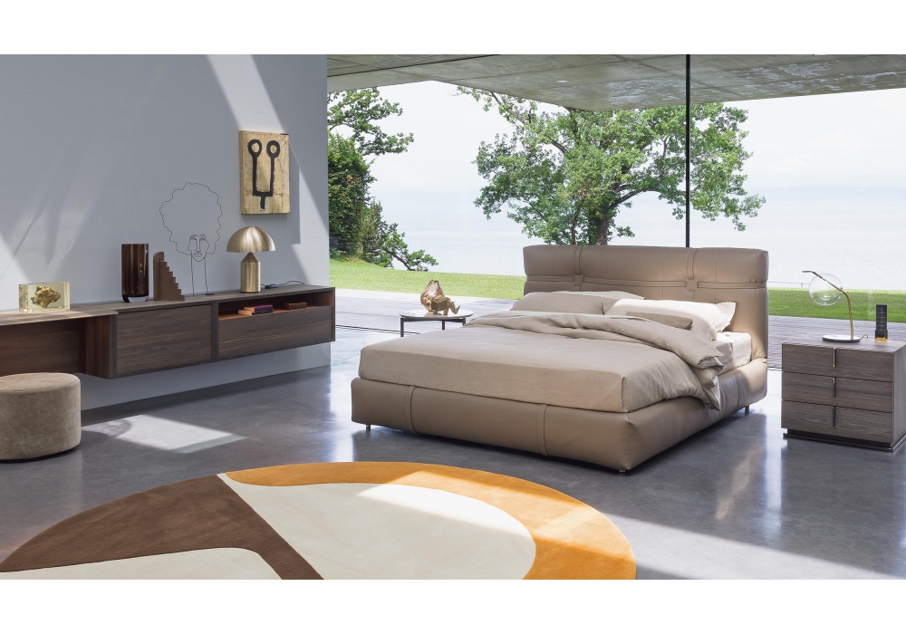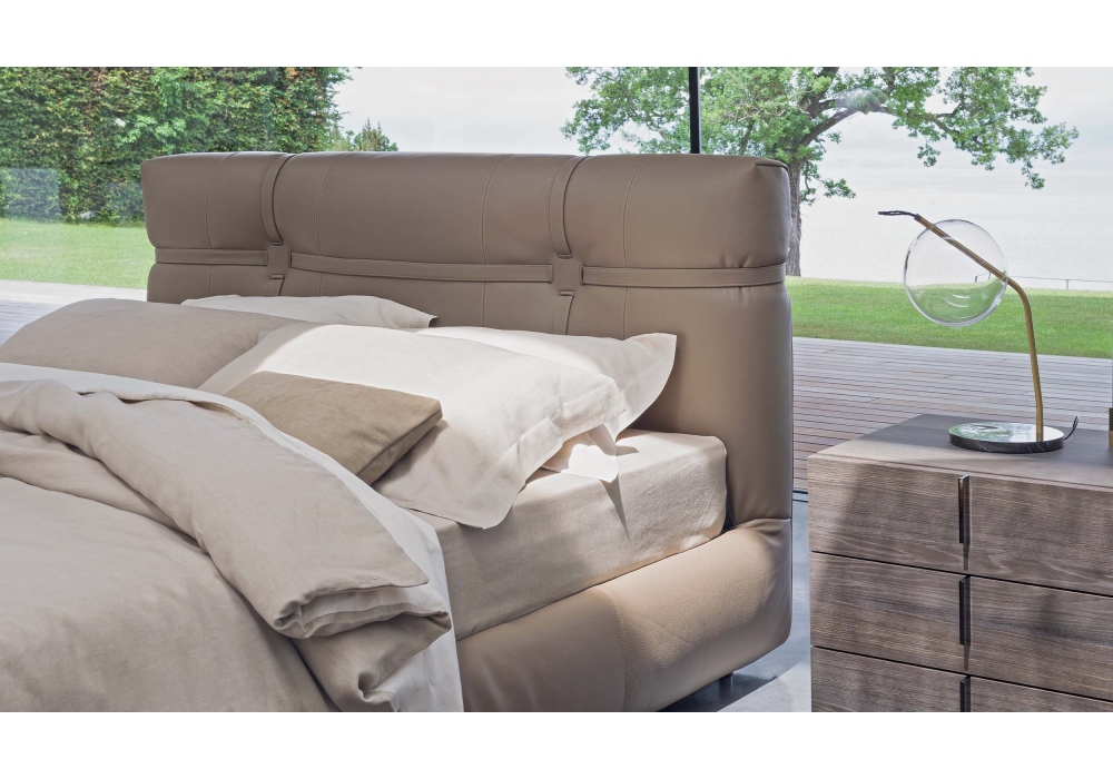 New Bond firmato da Matteo Nunziati per Flou è un letto imbottito che può essere rivestito in pelle o tessuto. Questo letto è caratterizzato da cinture in pelle. Disponibile con base Leonardo, base contenitore, base fissa o base con movimento elettrico.
