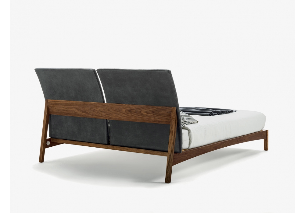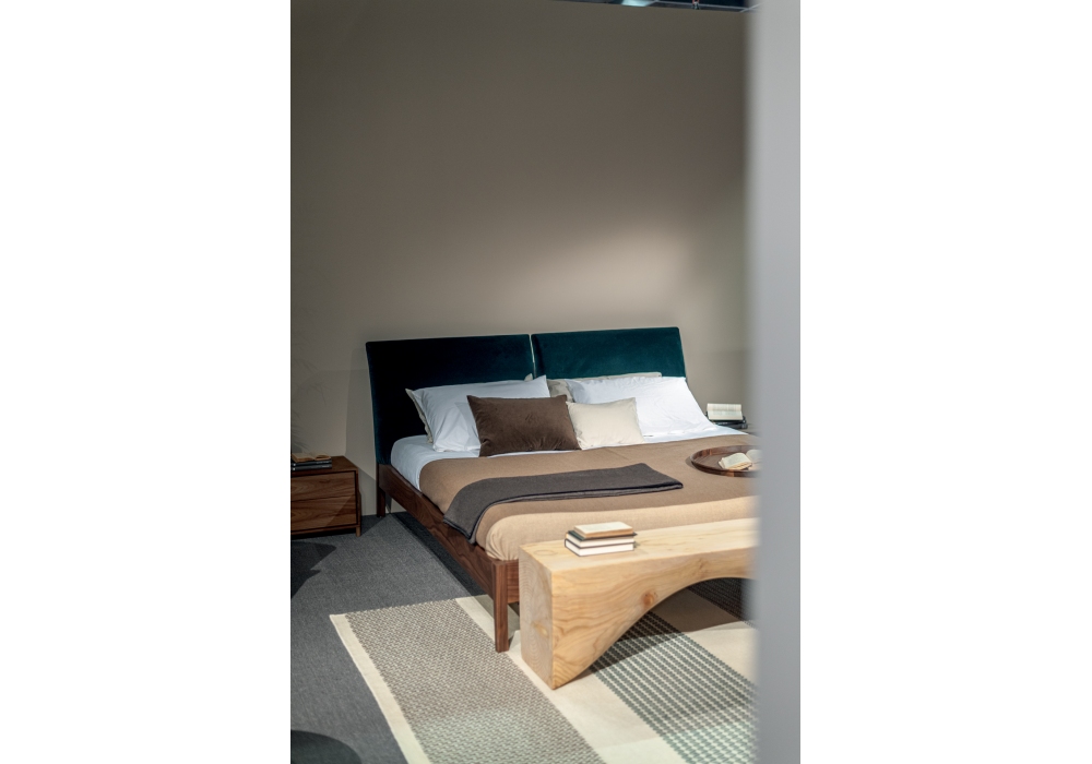 Sleepy firmato da Vegni Design per Riva 1920 è un letto con struttura realizzata in legno massello abbinata ad una testata imbottita curvilinea rivestita in pelle o tessuto.