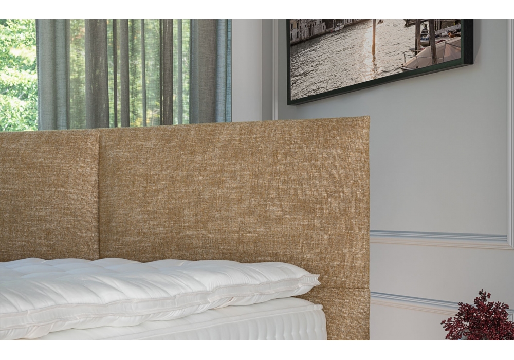 Portofino firmata da Quaglio Simonelli per Treca Interiors Paris è una testiera realizzata con struttura in legno e rivestimento non sfoderabile in tessuto. Sporgente e portante con appoggio su zoccolo nero.