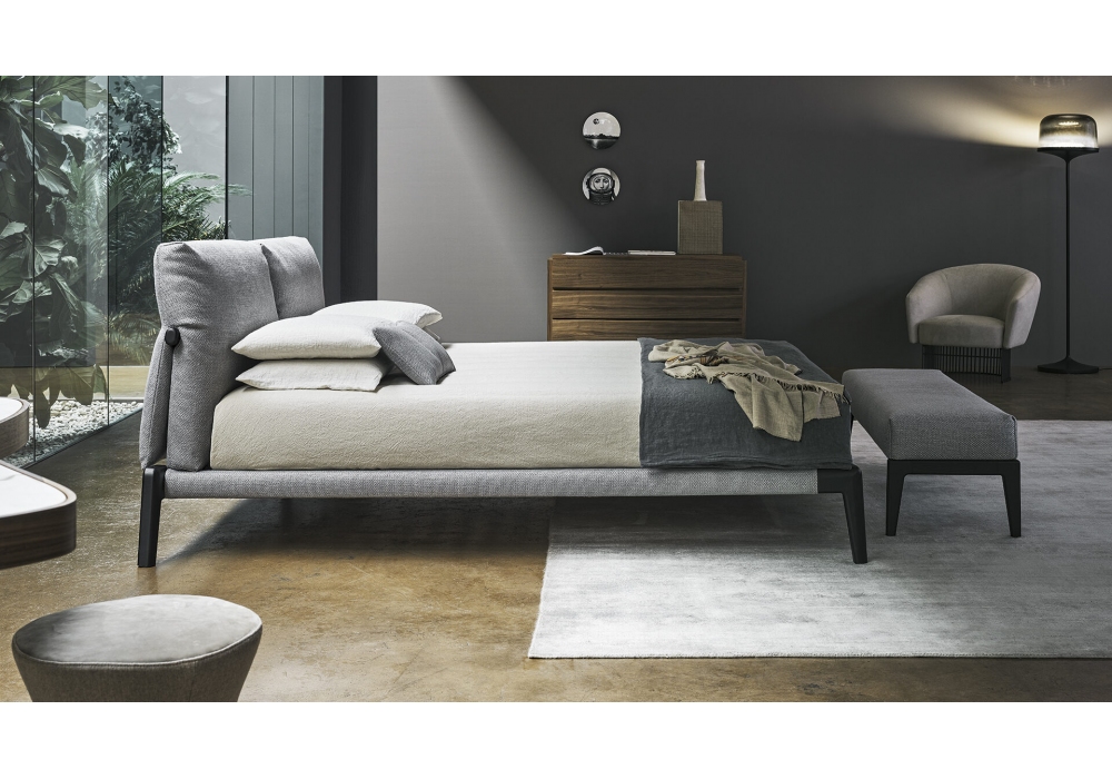 Kriss firmato da Maurizio & Silvia Varsi per Bonaldo è un letto con struttura interna in legno, testata imbottita in poliuretano espanso a varie densità e giroletto in legno massello con piedi sagomati a vista. Il rivestimento è sfoderabile e disponibile in diversi tessuti e colori. Il letto è realizzato in varie dimensioni.
