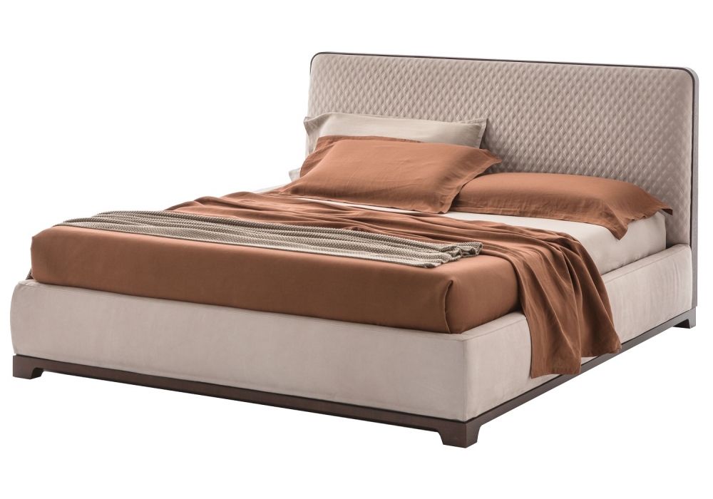 Bali firmato da Giuseppe Bavuso per Alivar è un letto realizzato con base in massello di frassino verniciato o di noce nazionale e testata in legno imbottita in poliuretano espanso a densità differenziata con fodera in fibra di poliestere, con struttura in legno oppure rivestita. Struttura giroletto in multistrato di abete rivestita in poliuretano espanso e vellutino accoppiato. Rivestimento anteriore testata in pelle trapuntata con disegno esclusivo Alivar. Rete in multistrato di betulla con doghe curve con regolatori di rigidità nella zona lombare. Disponibile anche nella versione con contenitore con rete alzabile.