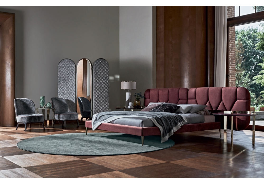 Dorothy firmato da Castello Lagravinese Studio per Opera Contemporary è un letto con piedini realizzati in metallo e rivestimento disponibile in tessuto o pelle.