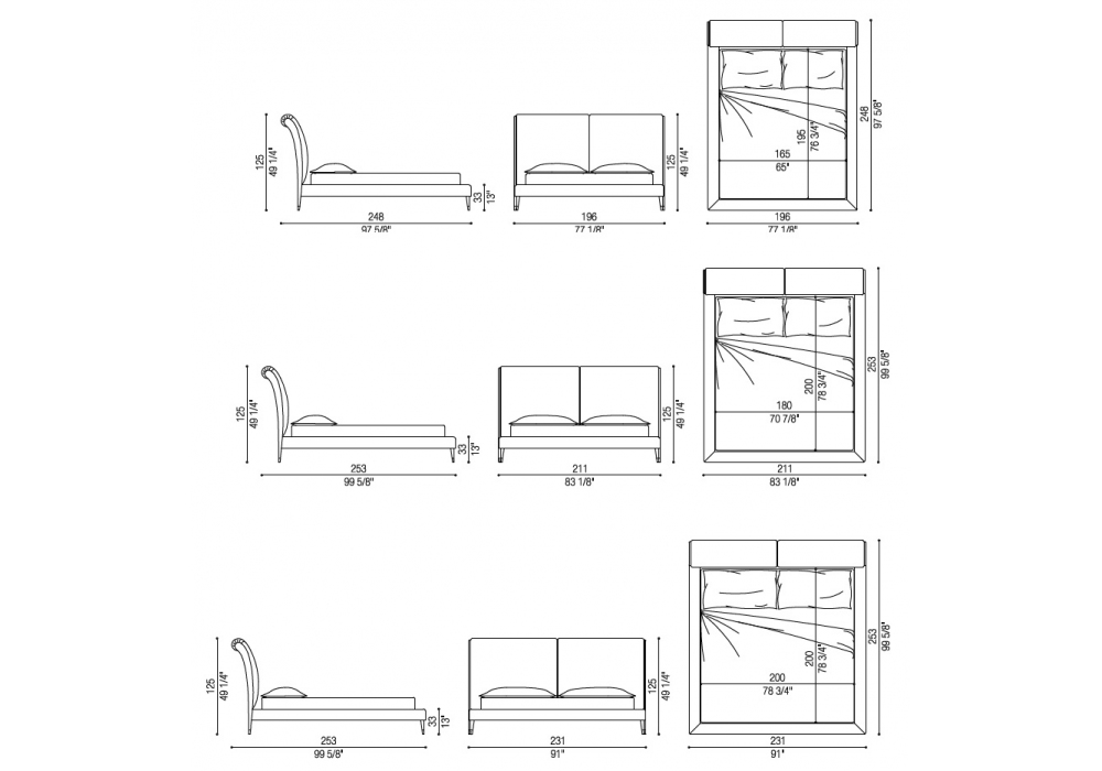 | Dimensioni materasso | 165 x 195 cm 180 x 200 cm; 200 x 200 cm. |