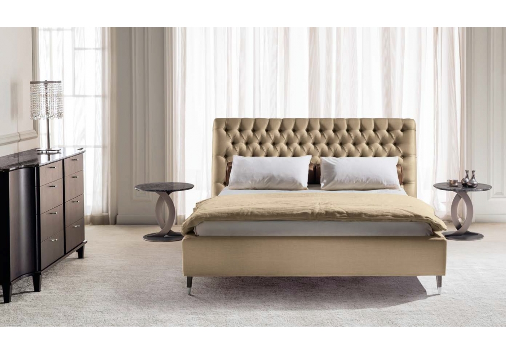 Emma firmato da Opera Contemporary è un letto con rivestimento disponibile in tessuto o pelle. La sua caratteristica principale è la raffinata lavorazione capitonnè presente sulla testata. Piedini in legno di frassino con puntali in metallo.