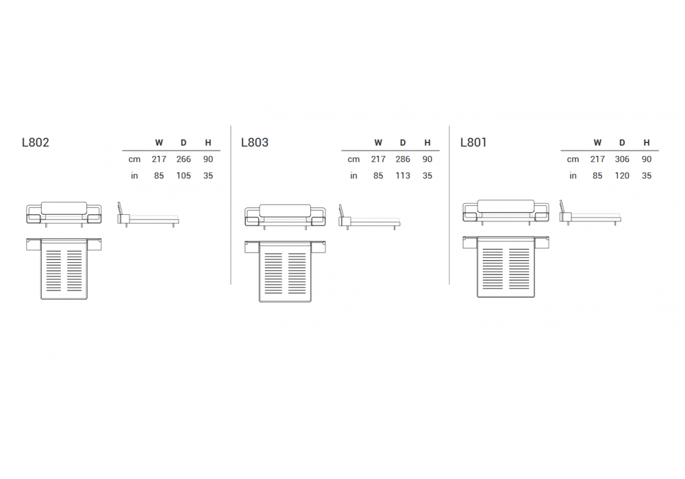 | Dimensioni | - 217 x 266 x H 90 cm; - 217 x 286 x H 90 cm; - 217 x 306 x H 90 cm. |