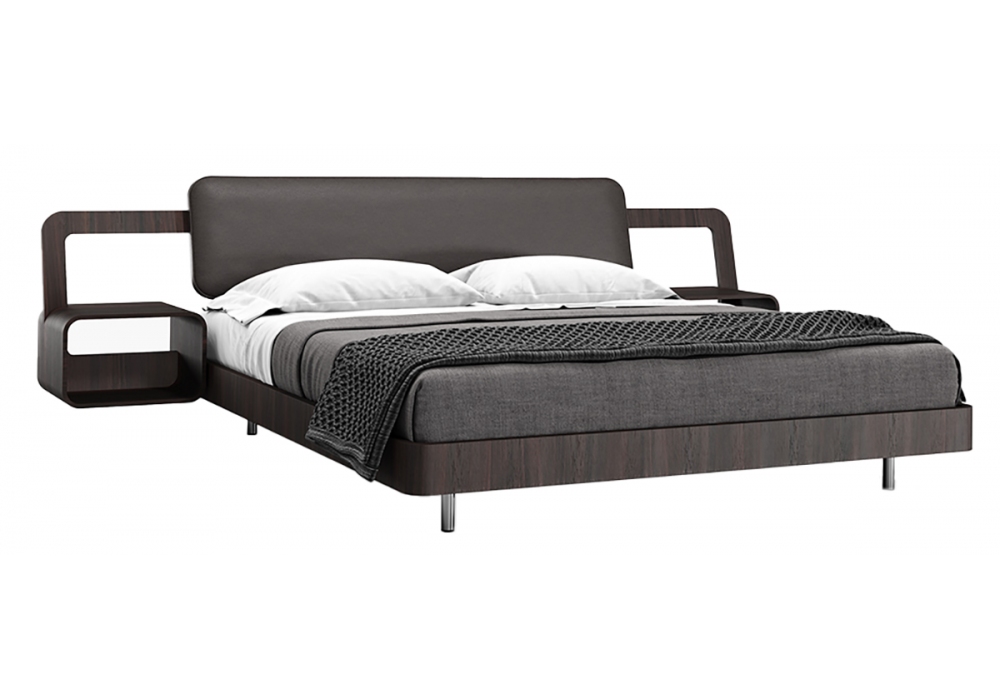 Valentino firmato da Rodolfo Dordoni per Emmemobili è un letto con struttura realizzata in legno multistrato curvato impiallacciato e piedini in metallo lucido. Pianale per materasso in legno multistrato fresato e testata con imbottitura in gommapiuma rivestita in pelle. Disponibile in due dimensioni. Materasso non incluso, acquistabile separatamente.