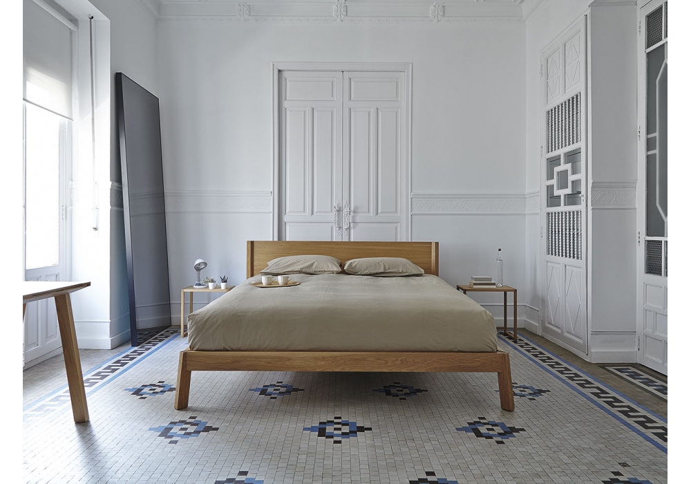 Breda firmato da Borja Garcia per Punt è un letto con struttura in legno massiccio di rovere con testiera in MDF impiallacciato rovere e rivestito in tessuto o pelle. Disponibile anche senza rivestimento testiera.