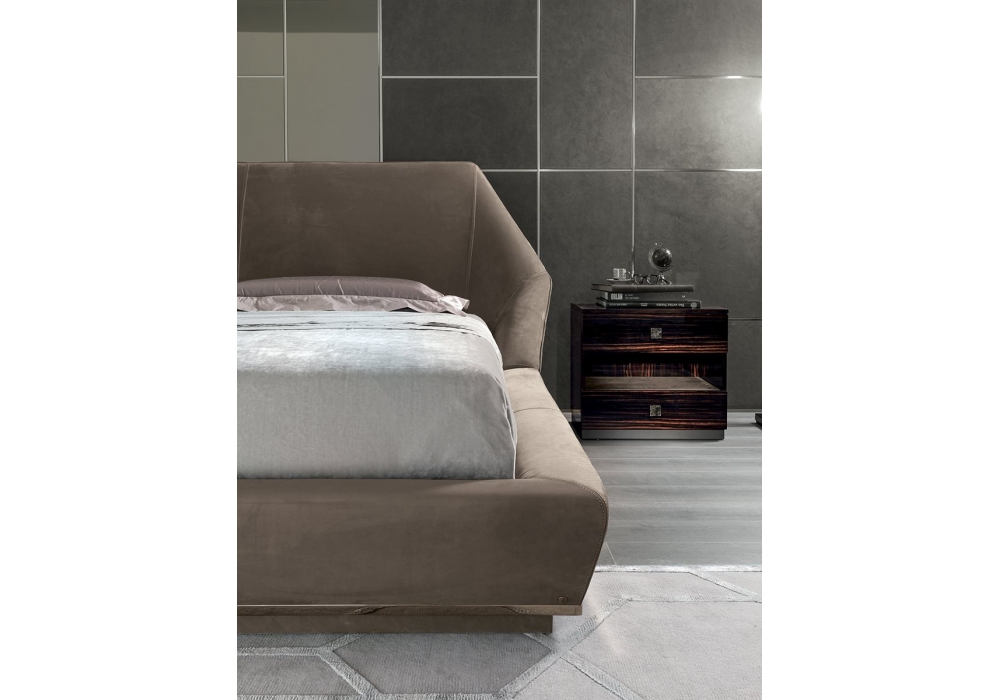 Yume firmato da Margherita Fanti per Longhi è un letto con bordo inferiore in metallo in finitura lucida o opaca e rivestimento in tessuto o pelle non sfoderabile. La testata e la base sono separate mediante un aggancio per facilitare il trasporto ed il montaggio. Disponibile in differenti dimensioni.
