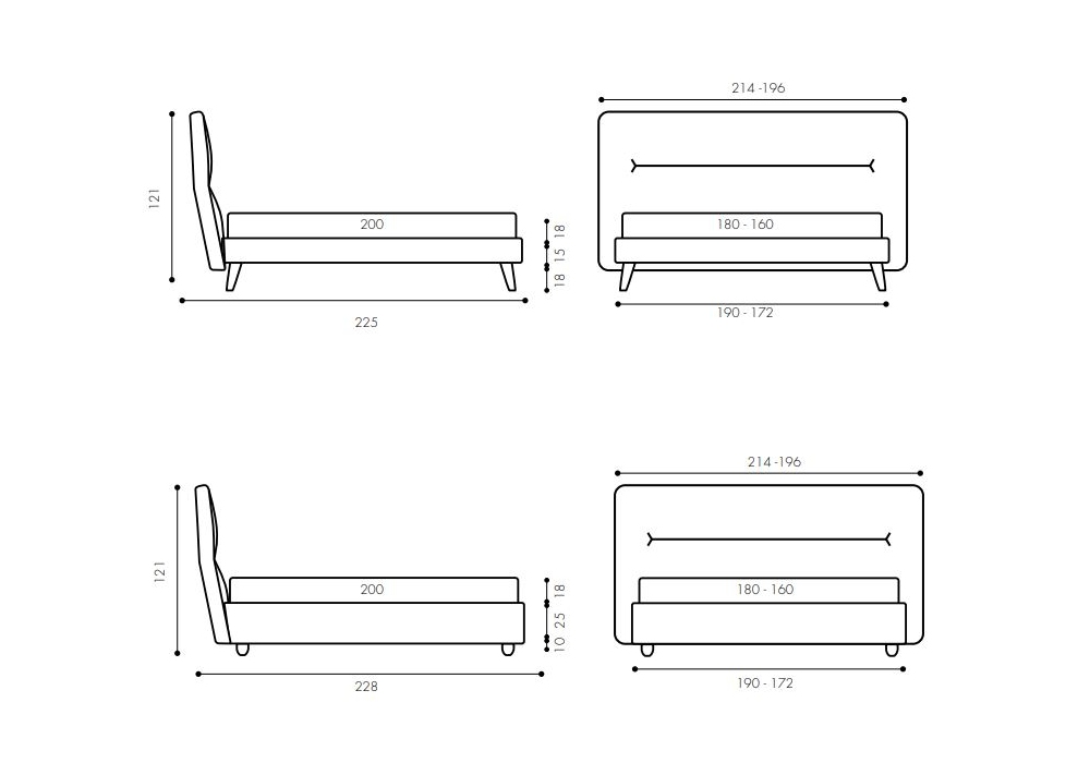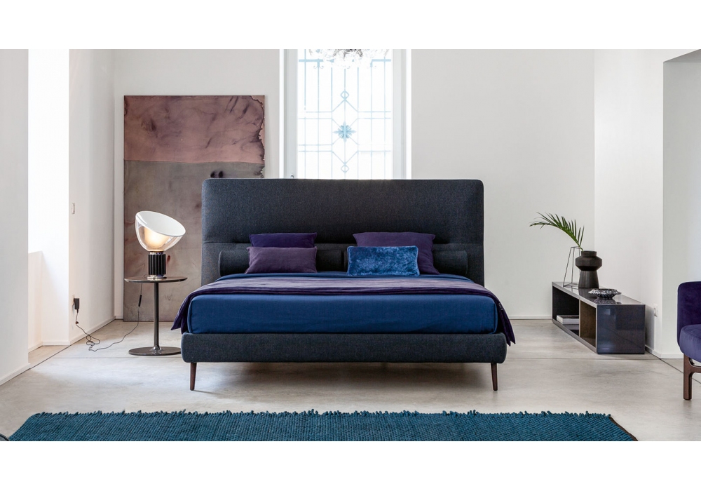 De-Light firmato da Ludovica e Roberto Palomba per Twils è un letto imbottito con giroletto alto 15 o 25 cm, realizzato in diverse dimensioni. Il rivestimento è sfoderabile, in diversi tessuti e colori. I piedi sono conici inclinati color grafite (PIE69Z) o tondi inclinati color madreperla (PIE38).