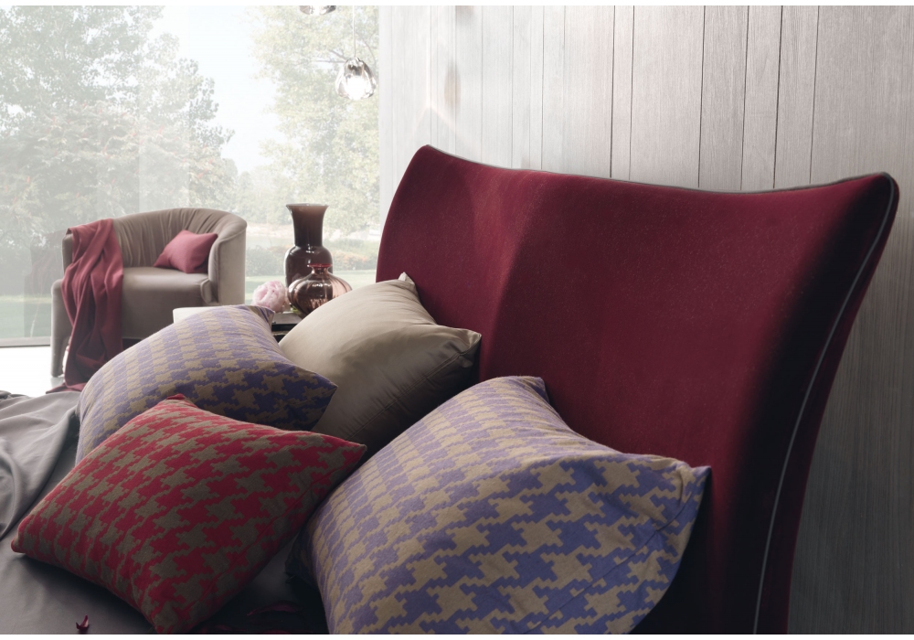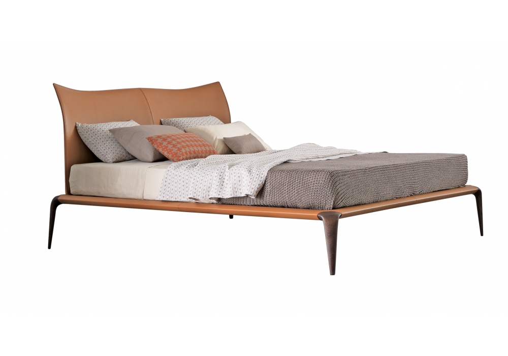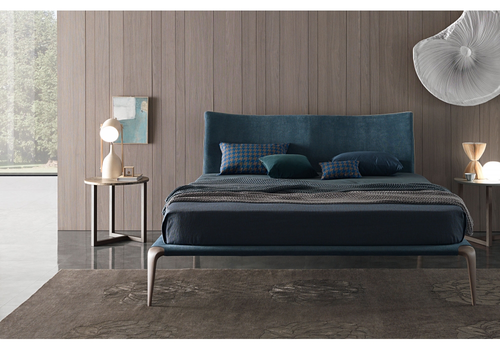 Margareth firmato da Carlo Marelli & Massimo Molteni per MisuraEmme è un letto con testata in acciaio, rivestita in pelle, cuoio, ecopelle o tessuto impreziosita da cuciture sartoriali. La base in legno massiccio, anch'essa avvolta dal raffinato tessuto coordinato, valorizza il piedino in legno massello.