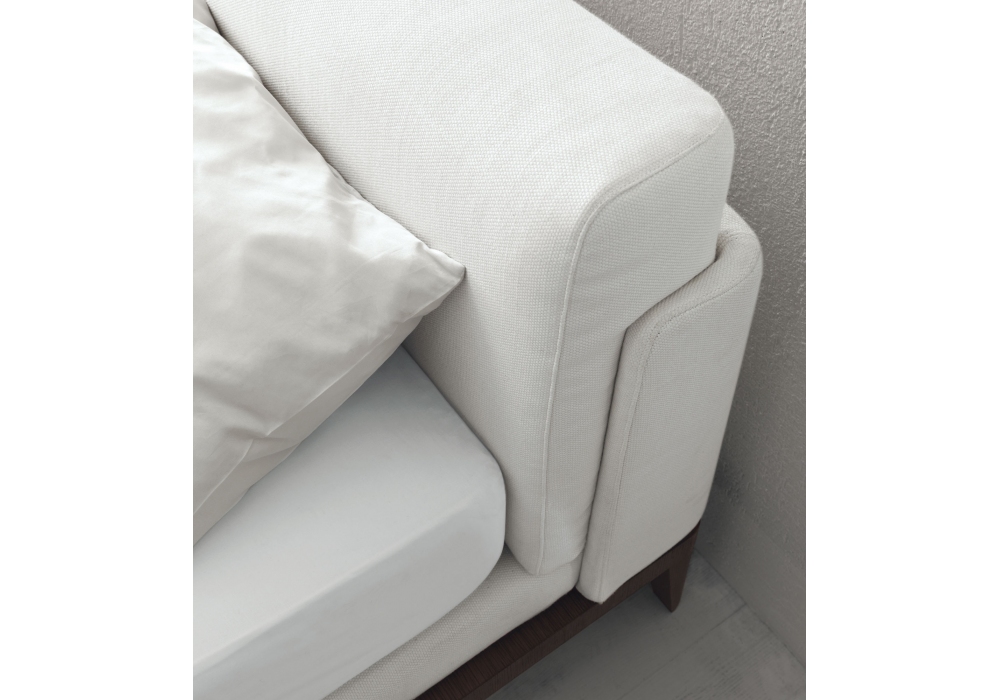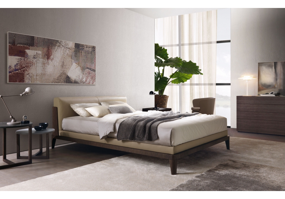 Assuan firmato da Ferruccio Laviani per MisuraEmme è un letto con rete fissa dedicata realizzato con struttura in legno e cuscinature testata in poliuretano espanso a densità differenziata con copertura di ovatta sintetica e accoppiato con vellutino. Rivestimento sfoderabile in tessuto, ecopelle o pelle, con cerniera.