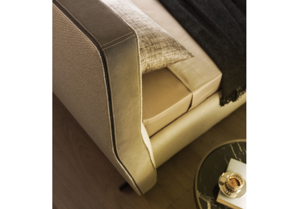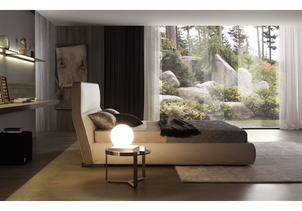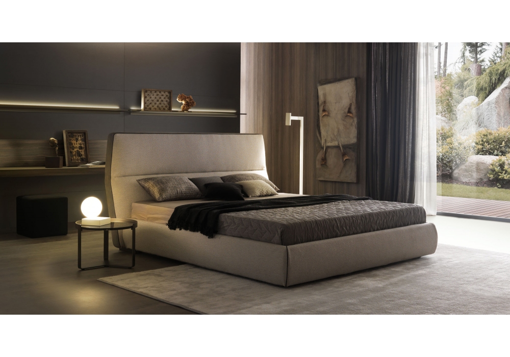 Cosy firmato da Mauro Lipparini per MisuraEmme è un letto con testata imbottita con rivestimento in tessuto, ecopelle o in pelle, non sfoderabile. Disponibile nella versione con rete alzabile oppure con rete fissa.