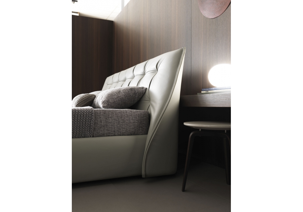 Sumo firmato da Mauro Lipparini per MisuraEmme è un letto con testata retroletto imbottita con con rivestimento in tessuto, ecopelle o pelle non sfoderabile. Su richiesta è possibile rivestire la parte frontale della testata con tessuto diverso dal rivestimento del letto. Disponibile con rete alzabile o con rete fissa.