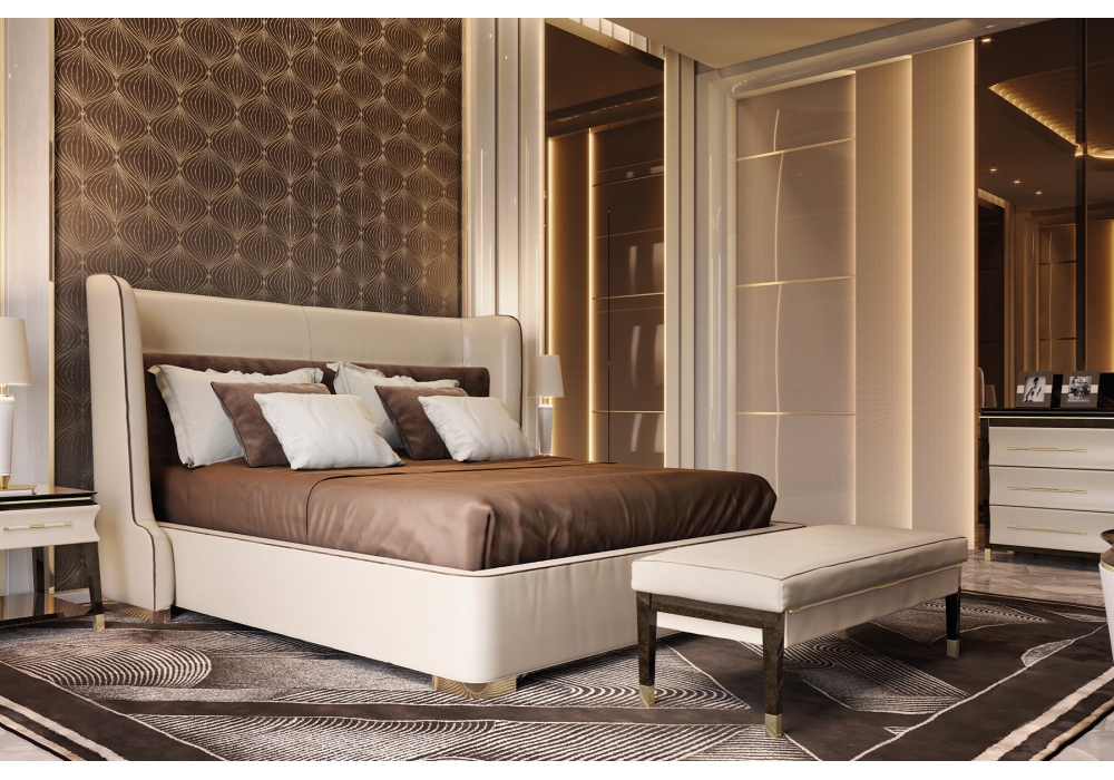 Noir firmato da Andrea Bonini per Turri è un letto con struttura in multistrato e legno massello con imbottitura in poliuretano espanso a quote differenziate. Rivestimento struttura e testiera in differenti pelli o tessuti. Piedini in metallo in diverse finiture.