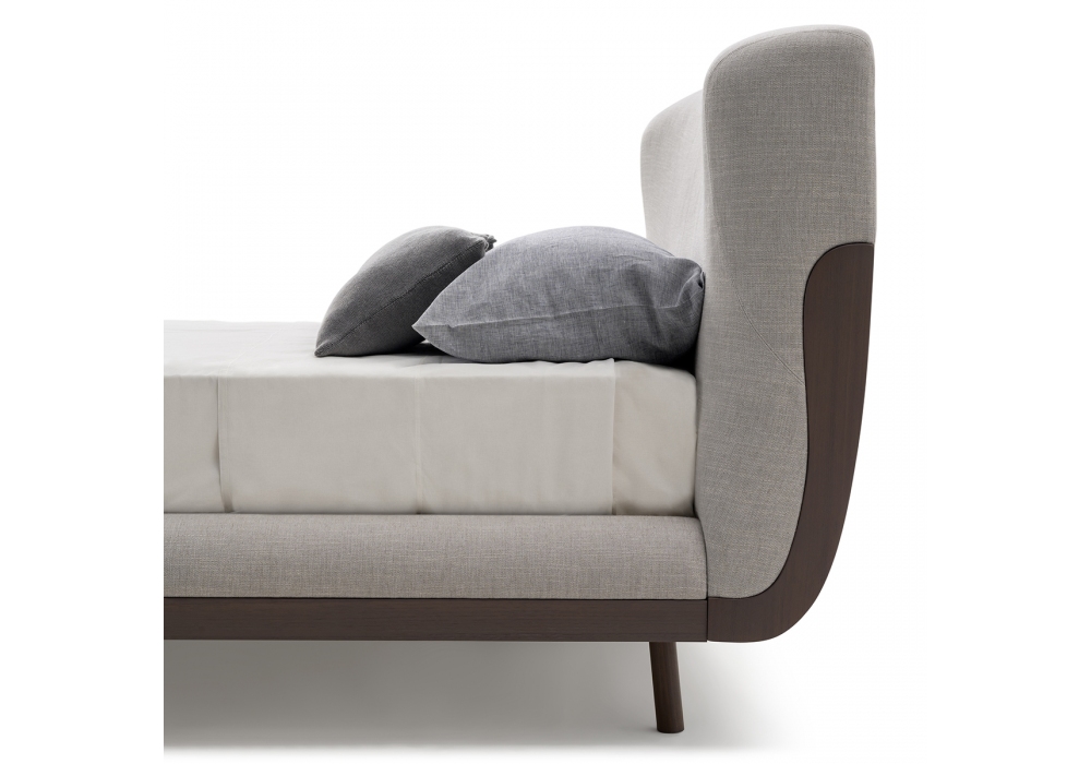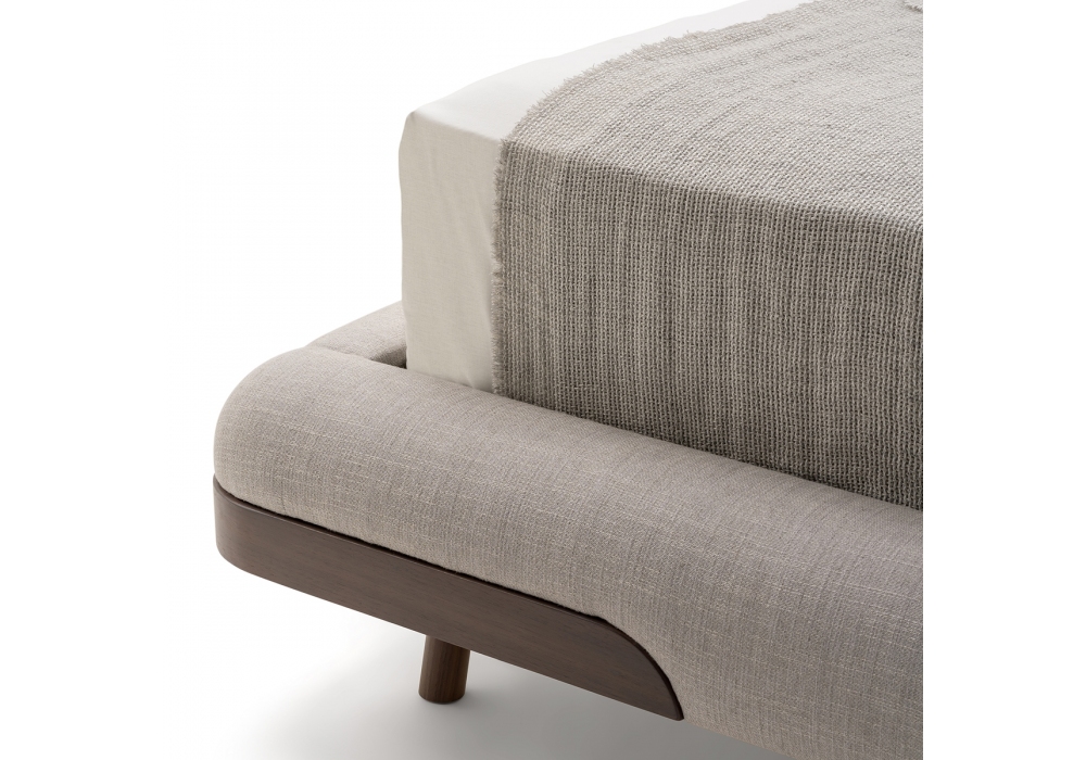 Soul firmato da Giuseppe Viganò per Tutti è un letto con struttura in multistrato, legno massello e pannelli di particelle di legno impiallacciato noce, imbottitura in poliuretano espanso a quote differenziate e rivestimento non sfoderabile in tessuto o pelle. Disponibile nell versione con o senza inserti in legno di noce.