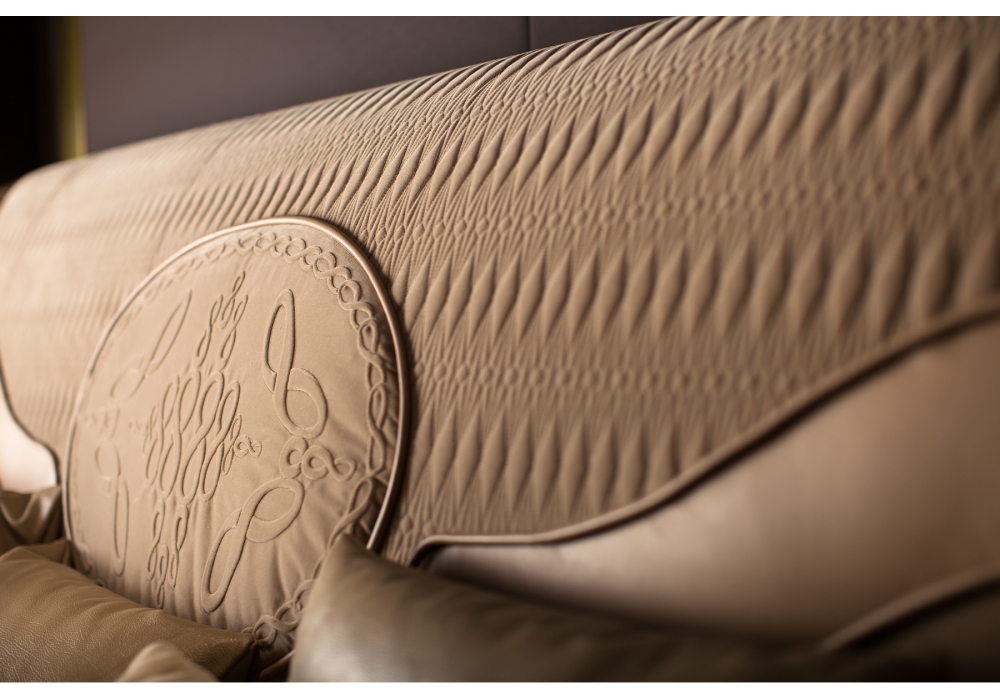 Numero Tre firmato da Roberto Serio per Turri è un letto con struttura in multistrato e pannello di particelle di legno e massello con rivestimento in tessuto o pelle. Il giroletto è disponibile nella versione liscia o a tre fasce. Come accessorio è possibile aggiungere una mantellina in tessuto liscio o ricamato.