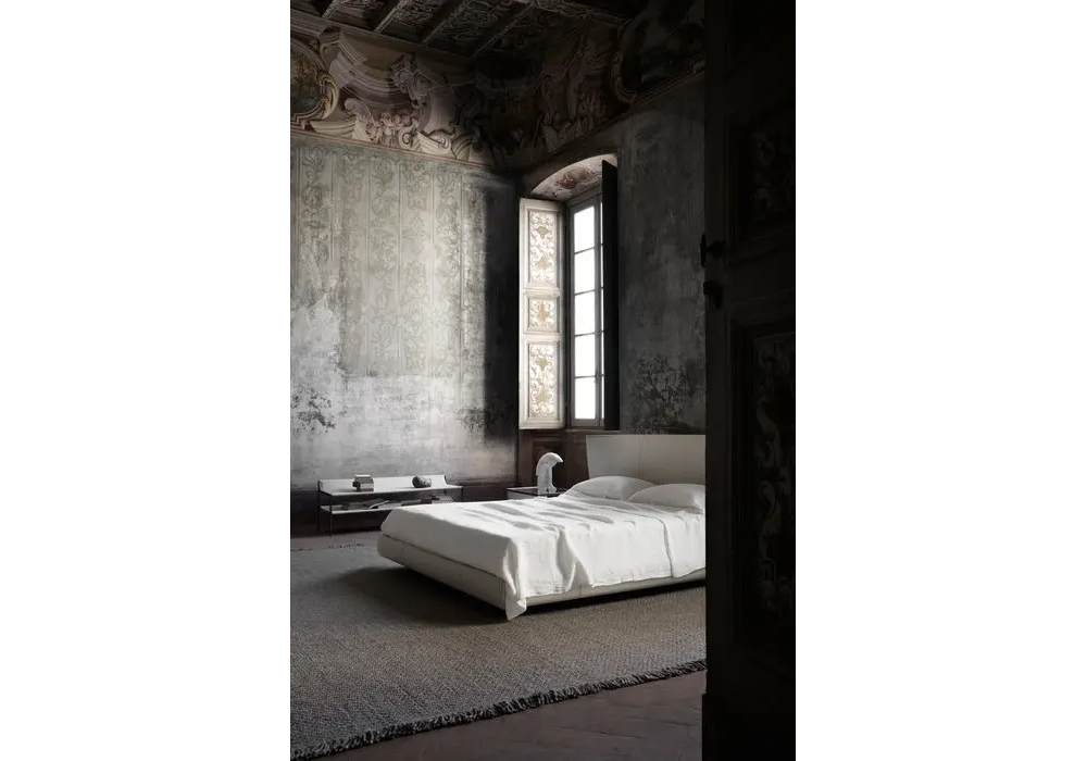 Alys 10 firmato da Gabriele & Oscar Buratti per B&B Italia è un letto con telaio interno in tubolari e profilato d'acciaio con imbottitura in schiuma di poliuretano Bayfit® e piedini in materiale termoplastico. Rivestimento in cuoio o tessuto in differenti finiture.