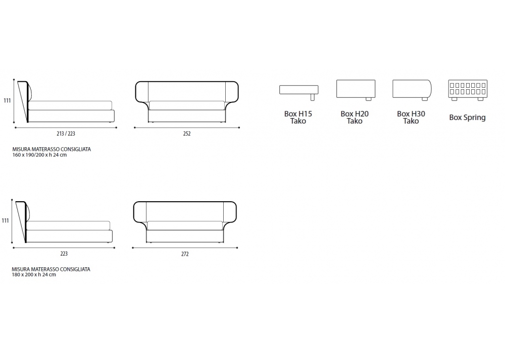 | Dimensioni materasso | 160 x 190 cm; 160 x 200 cm; 180 x 200 cm. |