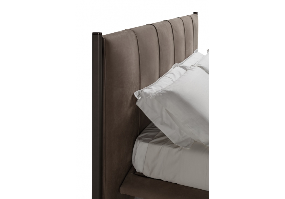 Levante firmato da Dainelli Studio per Conte Casa è un letto con rivestimento parzialmente sfoderabile in tessuto o in pelle. Bastoni e piedi finitura Bronzo con dettaglio Nickel. Disponibile in diverse finiture e dimensioni.