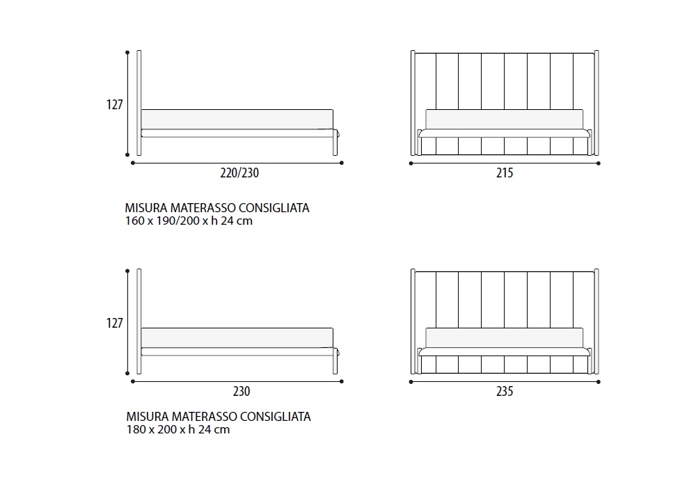 | Dimensioni materasso | 160 x 190 cm; 160 x 200 cm; 180 x 200 cm. |