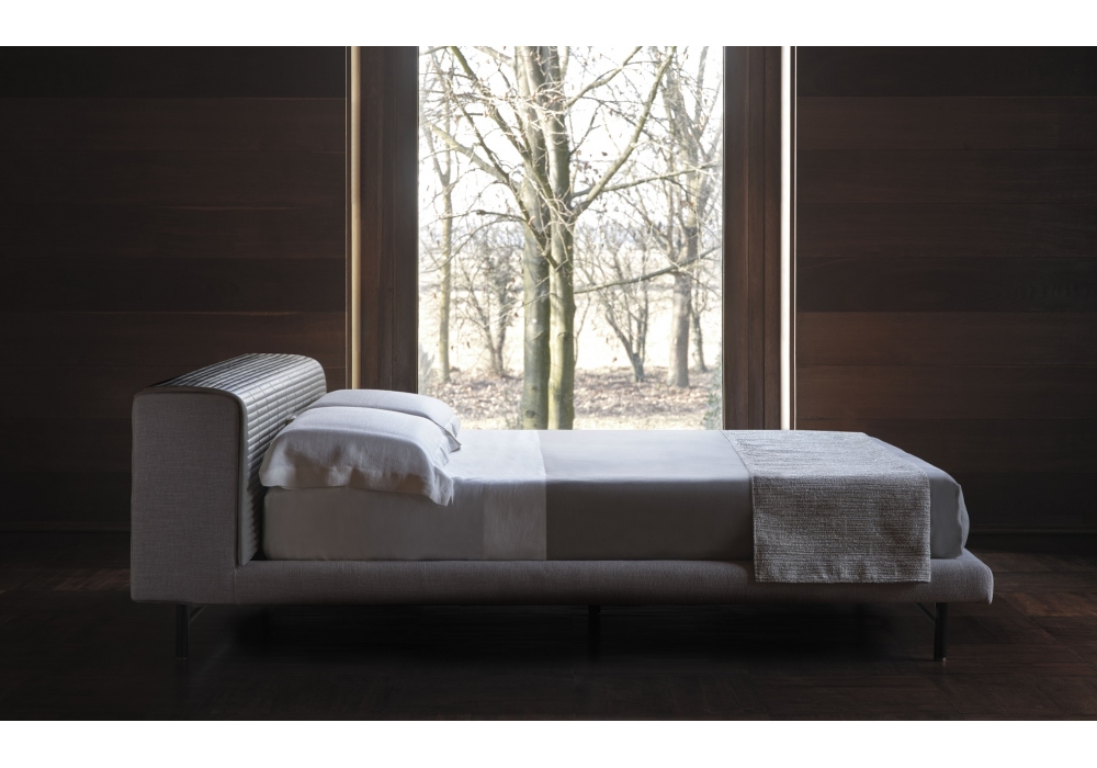 Cricket firmato da Dainelli Studio per Conte Casa è un letto con rivestimento parzialmente sfoderabile in tessuto o in pelle. Base in metallo nero o bronzo. Disponibile in diverse finiture e dimensioni.