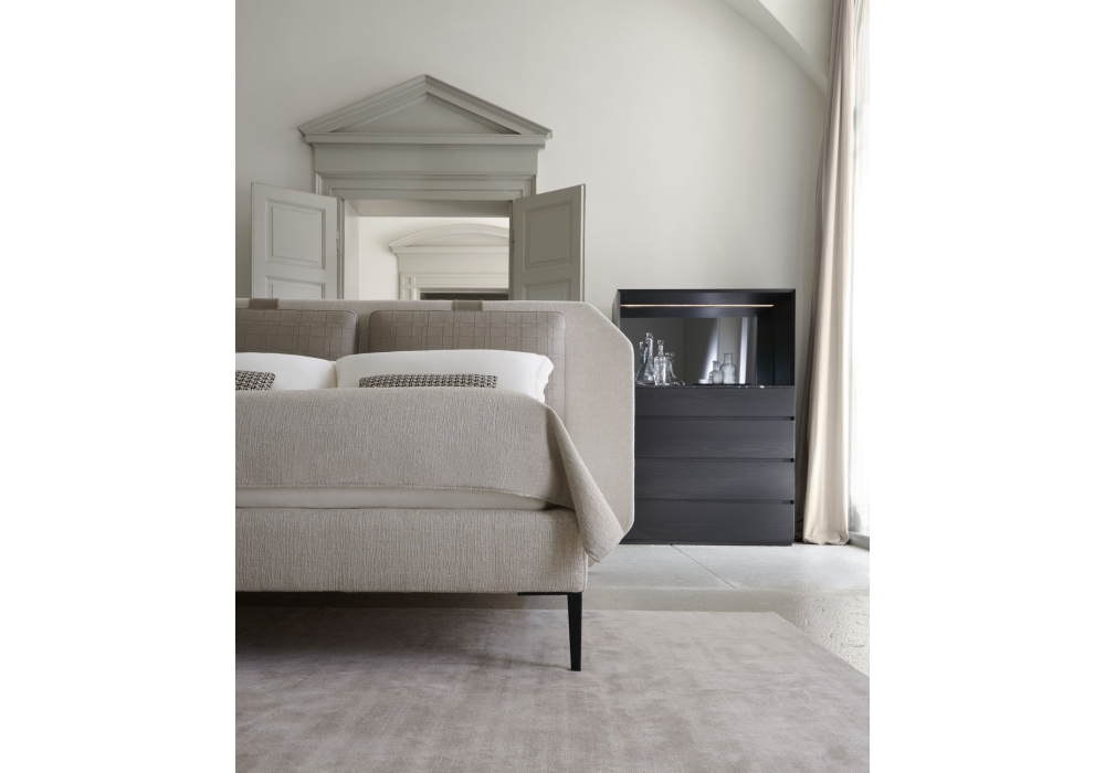 Karl firmato da Joe Garzone per Conte Casa è un letto realizzato con struttura in legno multistrato e rivestimento tessuto o pelle, parzialmente sfoderabile e cuscino interno, in pelle o tessuto, disponibile in versione liscia o intrecciata. La lavorazione "intreccio" non può essere eseguita su tessuto. Disponibile in diverse finiture e dimensioni.