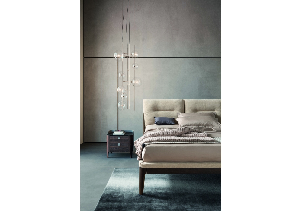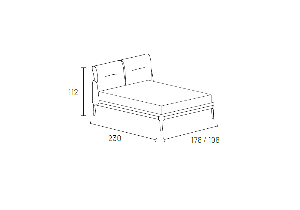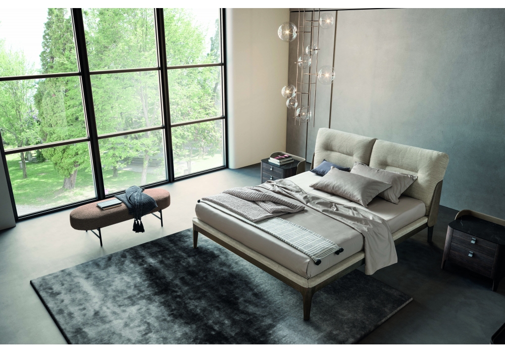 Settanta firmato da Imago per Dall'Agnese è un letto dal design raffinato con testiera imbottita in poliuretano espanso e rivestita in tessuto accoppiato. Struttura interna in legno di media densità rivestita in ecopelle Vintage o Vintage intreccio. Giroletto in legno massiccio di frassino impiallacciato con profilo in poliuretano espanso, predisposto per reti divisibili. Piedini in legno massello tinto. Cuscino sfoderabile, rivestimento giroletto non sfoderabile, disponibile in tessuto, ecopelle o pelle.