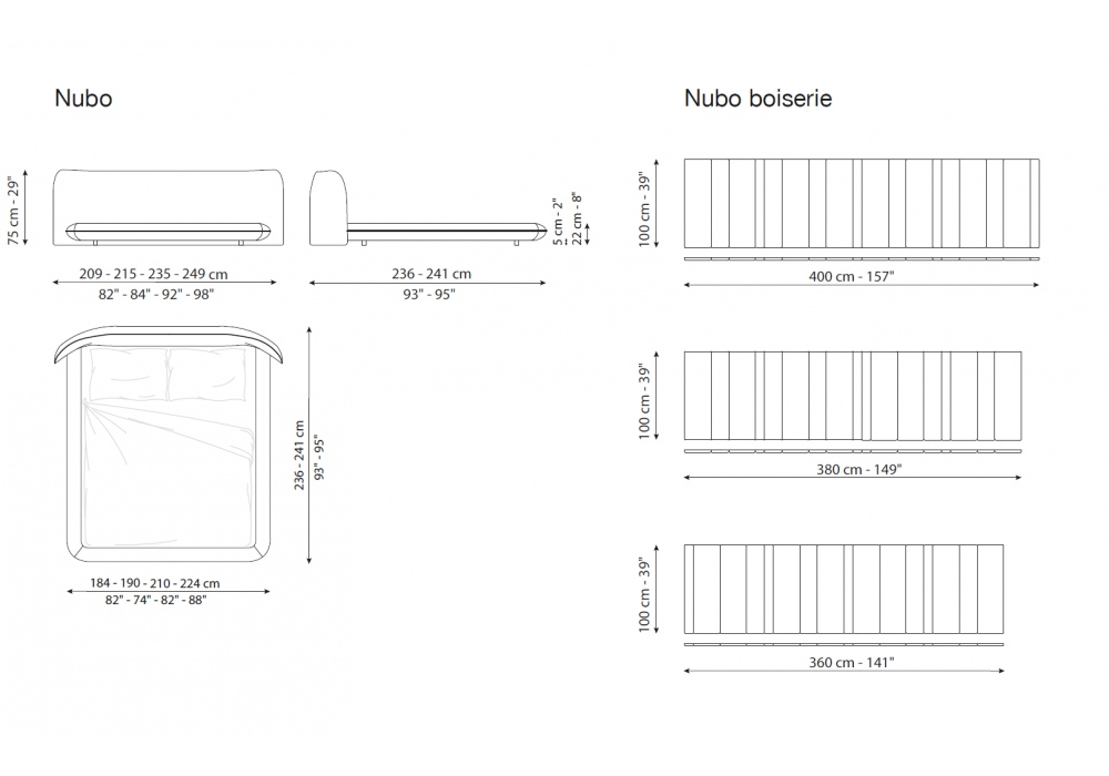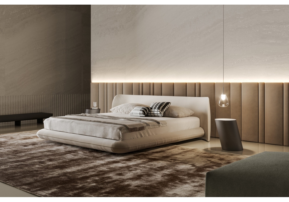 Nubo firmato da Massimo Castagna per Bonaldo è un letto realizzato in tessuto o pelle in varie finiture. Disponibile nella versione con o senza boiserie.