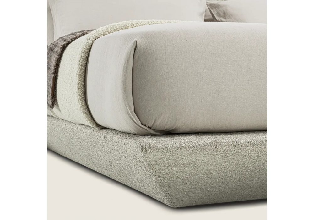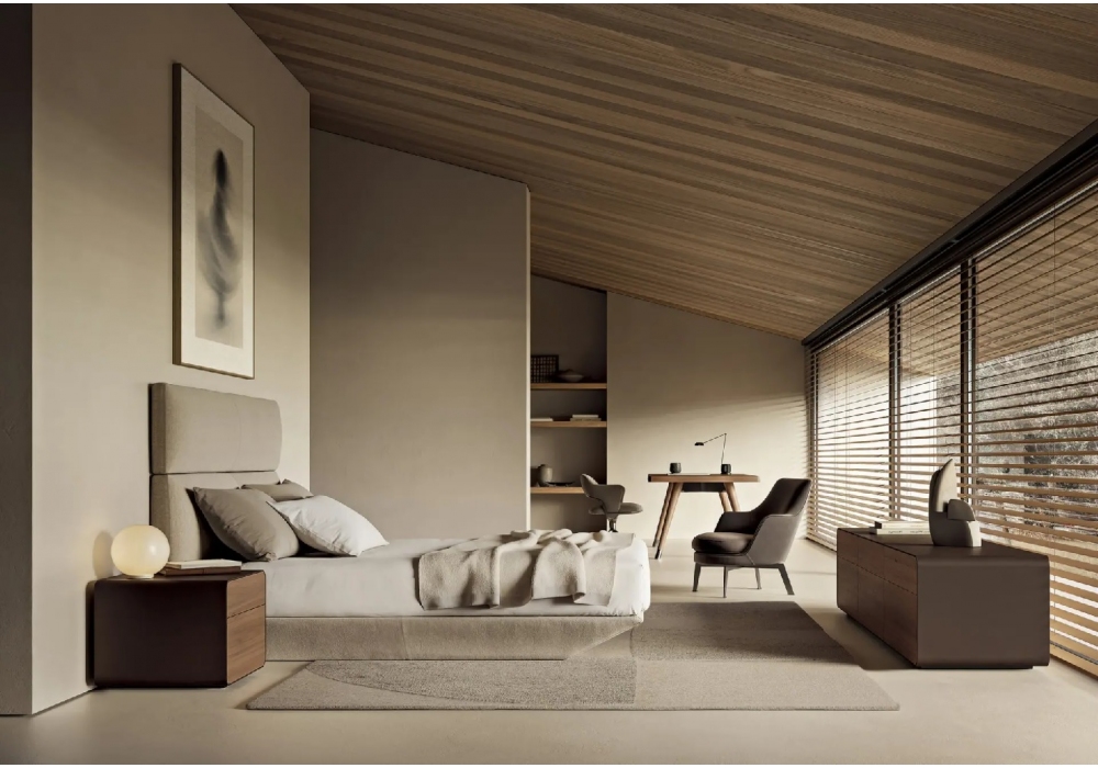 Loungescape Light firmato da Antonio Citterio per Flexform è un letto con giroletto in legno con imbottitura in poliuretano espanso rivestito in tessuto protettivo accoppiato. Testata a parete in legno con imbottitura in poliuretano espanso a densità differenziata rivestita in tessuto protettivo accoppiato e con staffe di sostegno per attacco a parete. Rete in metallo e doghe in legno. Piedi in materiale termoplastico. Rivestimento in tesseto o pelle. Disponibile in diverse dimensioni.