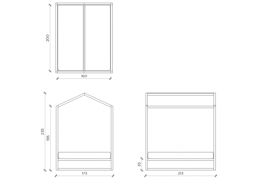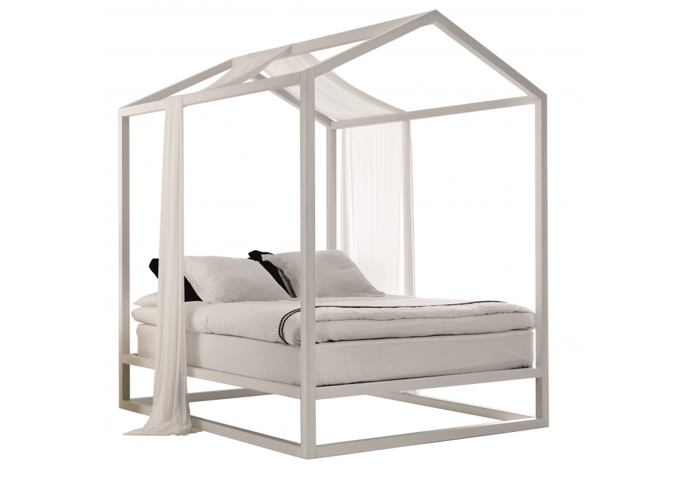 Casetta In Canadà firmato da Nathan Yong per Mogg è un letto a baldacchino con struttura in massello di legno di ajus laccato poro aperto bianco, completo di rete a doghe in legno di faggio 160x200 cm.