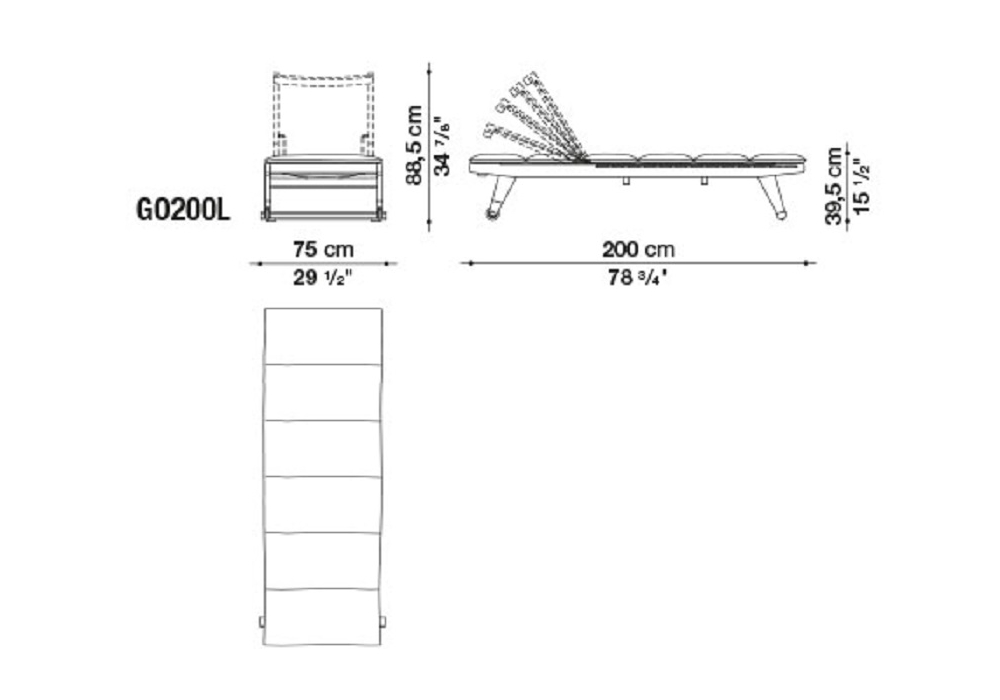 Gio firmato da Antonio Citterio per B&B Italia Outdoor è un lettino per esterni con struttura in legno massello di teak antique grey, cinghie in polipropilene colore tortora, ruote in materiale termoplastico nickel bronzato. Lo schienale è regolabile in quattro posizioni. Materassino con imbottitura in fibra di poliestere ad alta densità e rivestimento in tessuto.