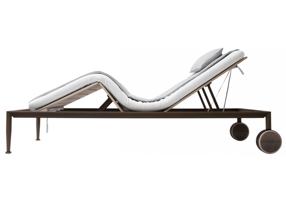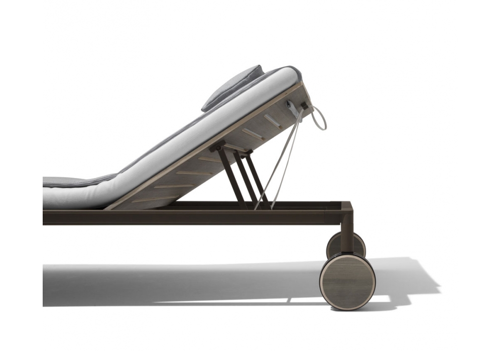 Gea firmato da Chi Wing Lo per Giorgetti è un lettino reclinabile con ruote con struttura in acciaio inox protetto verniciato a polvere color carruba. Piano in multistrato di betulla e impiallacciatura di rovere Abonos. Imbottitura in Breathair®. Regolabile in 4 posizioni diverse di inclinazione per lo schienale e 3 per il poggiapiedi. Sovramaterassino reversibile con poggiatesta incluso. Rivestimento completamente sfoderabile.