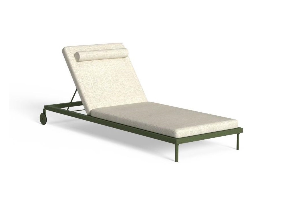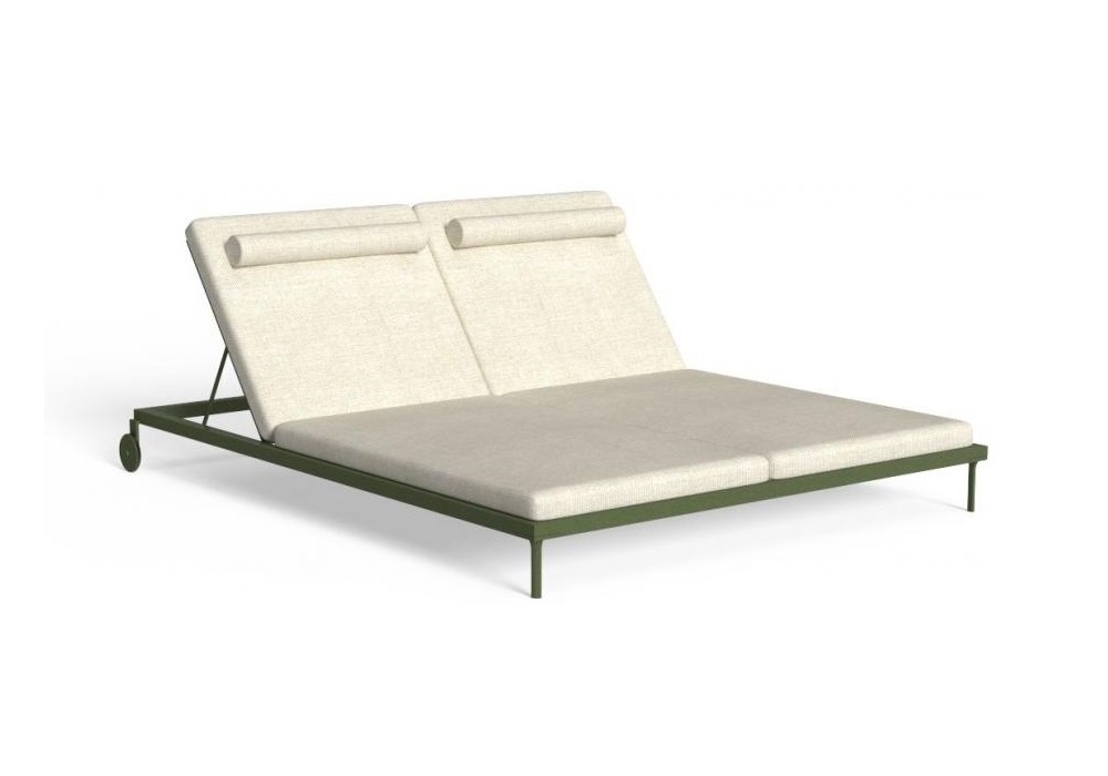 Cleo Soft Alu disegnato da Marco Acerbis per Talenti è un lettino per esterni con struttura bianco, grafite o verde e rivestimento in tessuto. Disponibile in due versioni singolo e doppio.