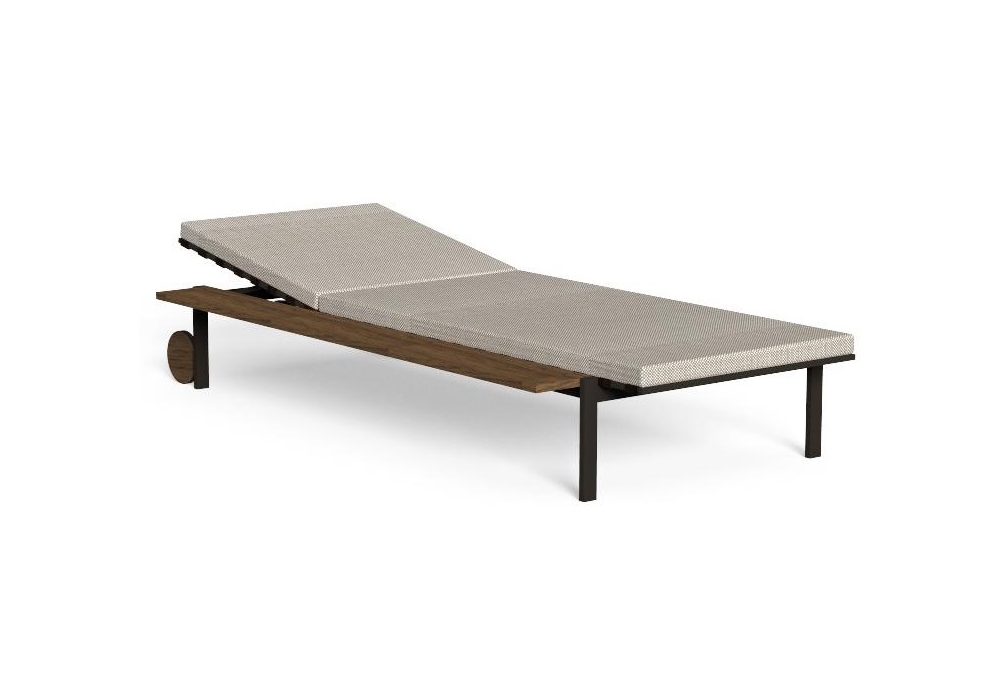 Casilda è un lettino disegnato da Ràmon Esteve per Talenti, reclinabile, con le ruote e con mensola in legno iroko o stonewwod sul laterale del lettino. La struttura è in acciaio inox verniciato a polvere disponibile in diverse varianti di colore. La seduta è supportata da cinghie elastiche sintetiche specifiche per l'esterno. La cuscineria è sfoderabile, facile da lavare e resistente agli agenti atmosferici.