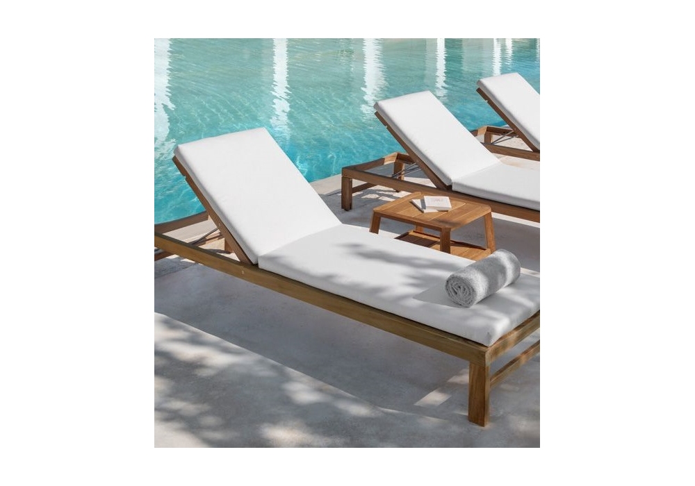 Sand prodotto e firmato da Ethimo è un lettino realizzato in teak con telo in materiale plastico Ethitex e schienale regolabile in quattro posizioni. Materassino addizionale in tessuto acrilico, disponibile in diversi colori. Sand è disponibile in versione interamente in legno Teak o Teak ed inserto centrale in Ethitex.
