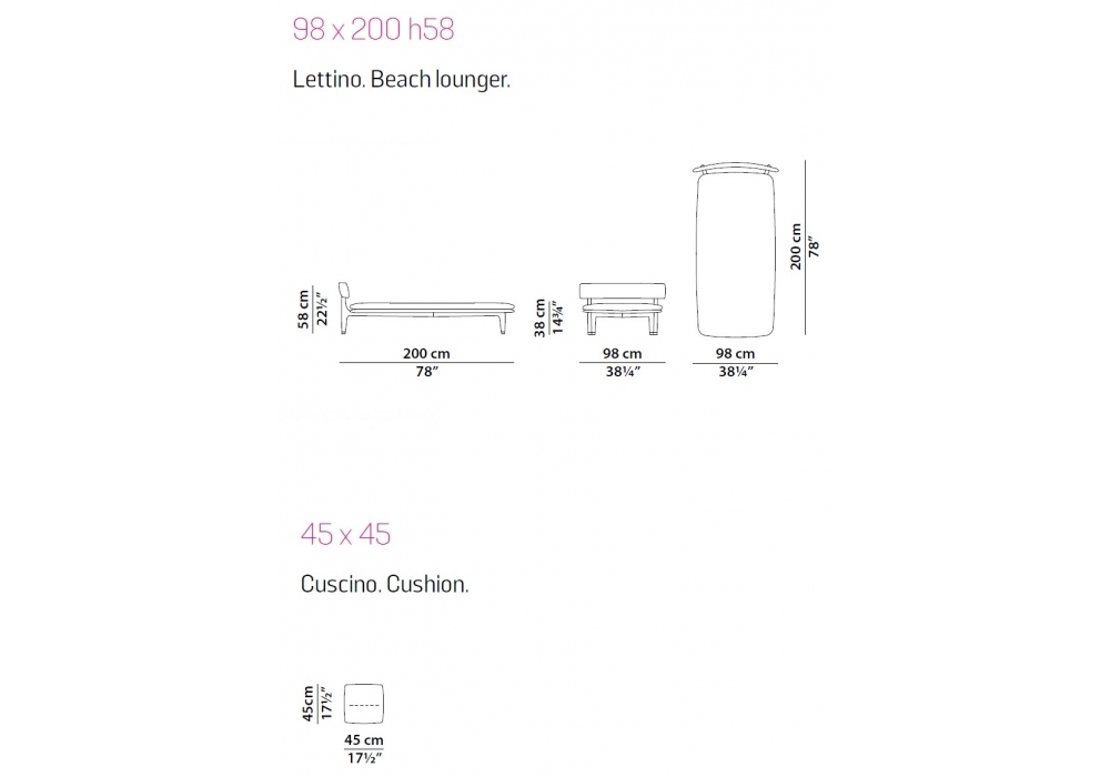 Himba Outdoor firmato da Roberto Lazzeroni per Baxter è un lettino con struttura in massello di Iroko naturale sabbiato con finitura ad olio. Cuscino di seduta in poliuretano espanso a densità differenziata con rivestimento in fibra acrilica. Molleggio a nastri elastici intrecciati di caucciù rivestito. Cuscino di schienale e cuscini decorativi in poliuretano espanso a densità differenziata con rivestimento in fibra acrilica.