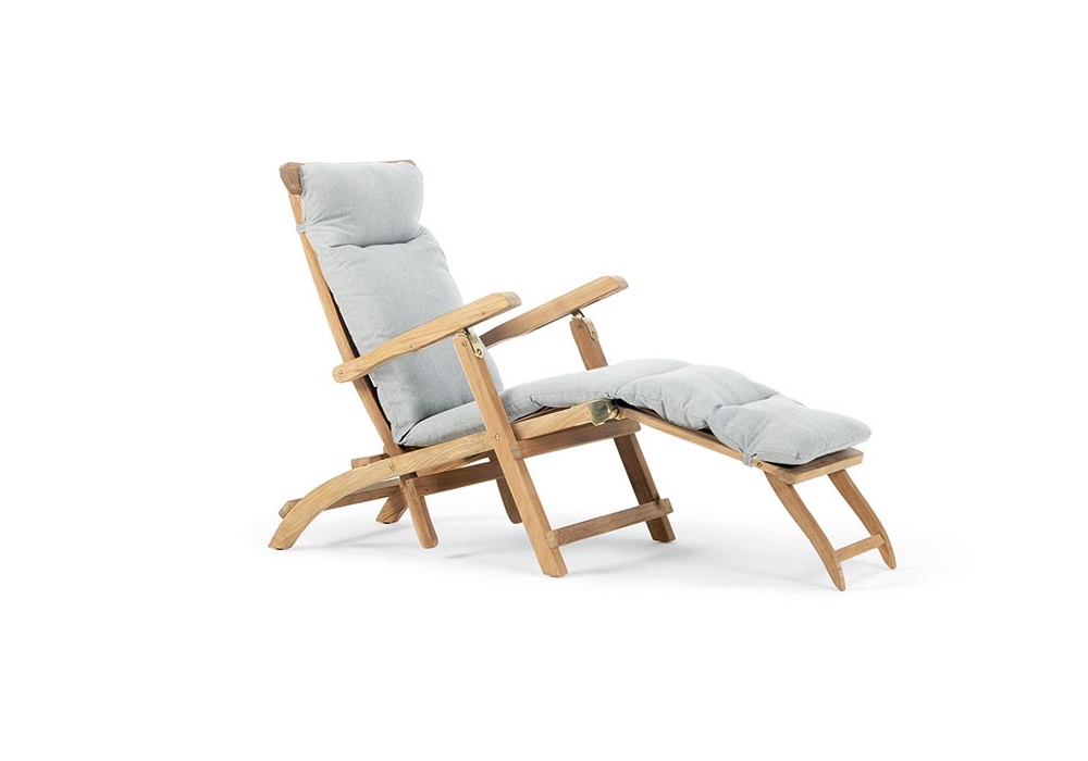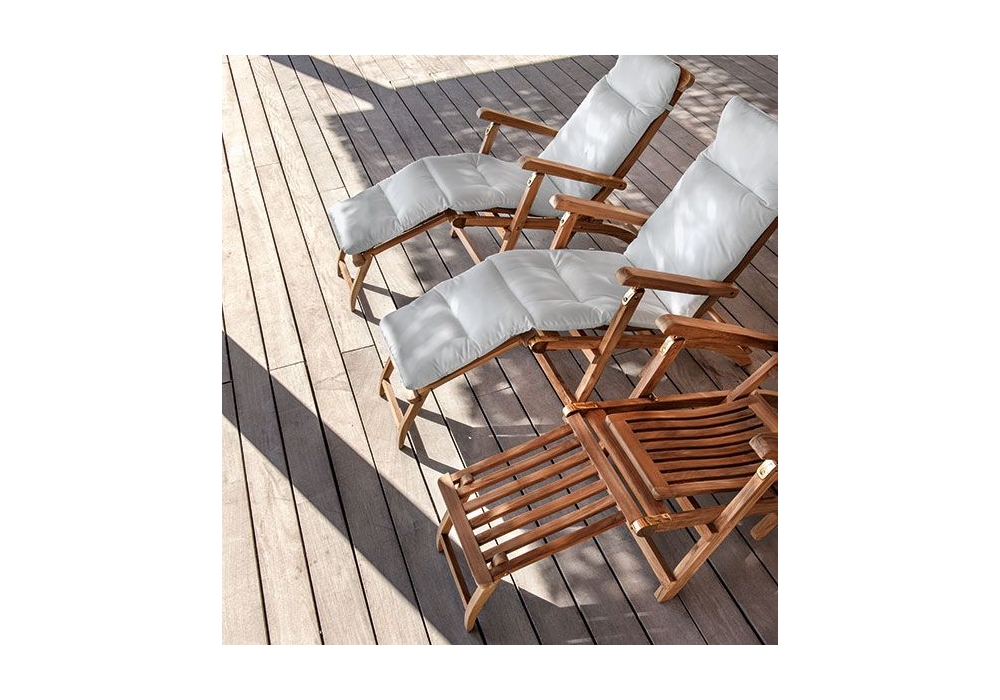 Cruise prodotta e firmata da Ethimo è una chaise longue da esterno strutturata in legno teak sia naturale che decapato con snodi e giunti in metallo.