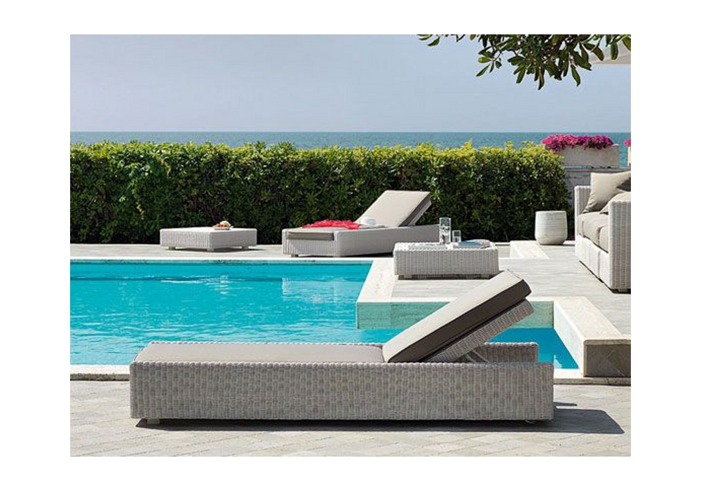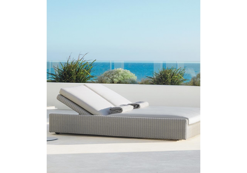 Cube prodotto e firmato da Ethimo è un lettino strutturato con intreccio di etwick e rivestimento in tessuto acrilico. Cube è disponibile in differenti versioni e finiture.