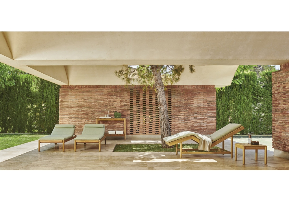 Barcode firmato da Alessandro Dubini per Varaschin è un lettino con struttura in teak di piantagione certificata. Disponibile con rivestimento in differenti finiture.