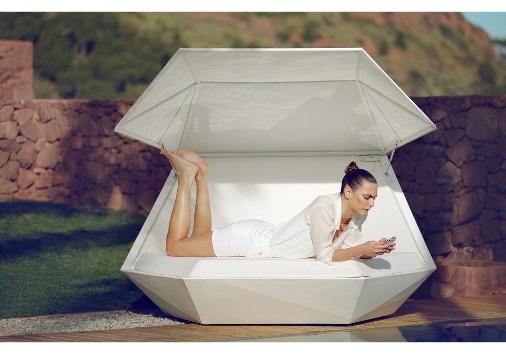 Faz firmato da Ramón Esteve per Vondom è un daybed con parasole realizzato in resina di polietilene mediante stampaggio rotazionale e rivestimento in tessuto. Riciclabile al 100%. Adatto per uso interno ed esterno. Disponibile in diverse finiture.