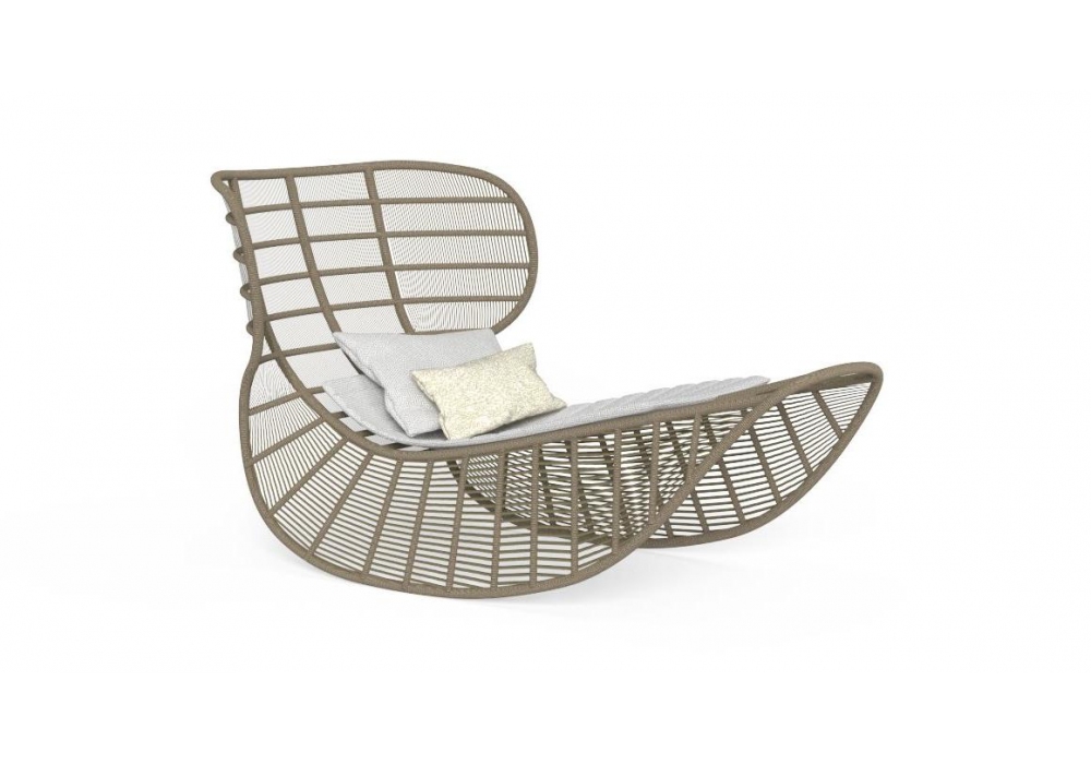 Panama firmato da Ludovica & Roberto Palomba per Talenti è un lettino a dondolo realizzato in alluminio rivestito in corda sintetica imbottita, rivestimento cuscino in tessuto. Disponibile in divese finiture.