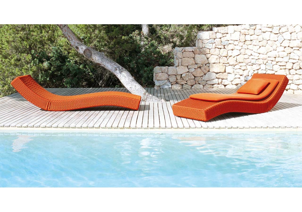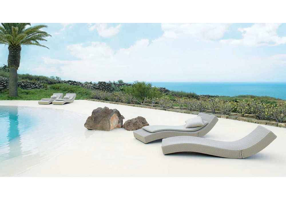 Wave disegnata da Francesco Rota per Paola Lenti è una chaise longue con schienale regolabile in due posizioni, oltre alla posizione di riposo. Rivestimento in Rope Corda, disponibile in diverse finiture.