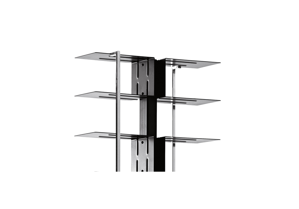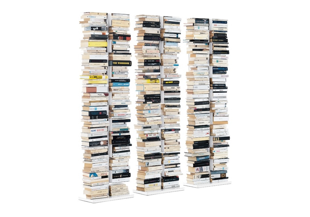 Ptolomeo X2 firmata da Bruno Rainaldi per Opinion Ciatti è una libreria verticale self standing in acciaio. Utilizzabile anche come elemento divisorio bifacciale. Composta da montante centrale e doppia fila di ripiani. Piedini regolabili. Disponibile in diverse finiture.