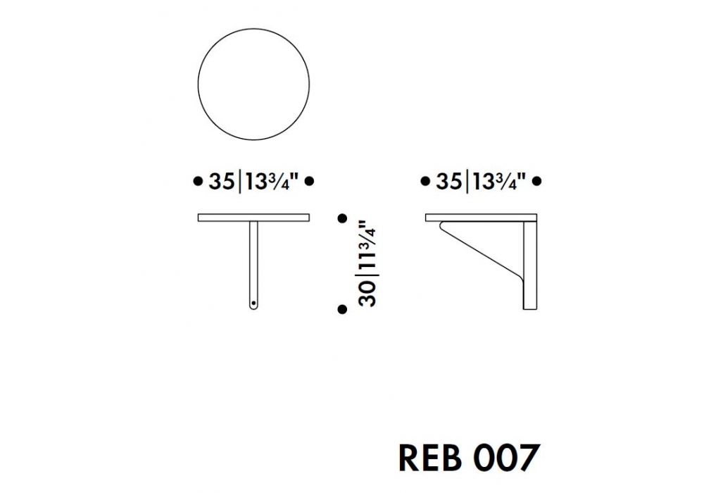REB 007 Kaari Shelf firmata da Ronan & Erwan Bouroullec per Artek, è una mensola a muro rotonda. Piano con superficie in linoleum (spessore 24 mm circa) e bordo in ABS. Supporto a parete in massello di rovere naturale o tinto nero con vernice protettiva.