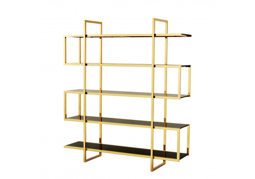 Soto firmato da Eichholtz è un mobile con cinque ripiani in vetro nero e struttura in acciaio inox lucido. Perfetto per salotti o zone living