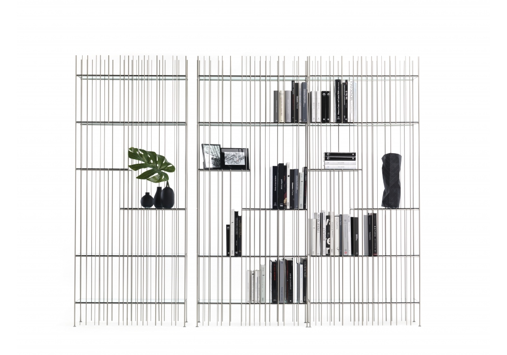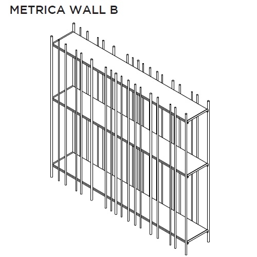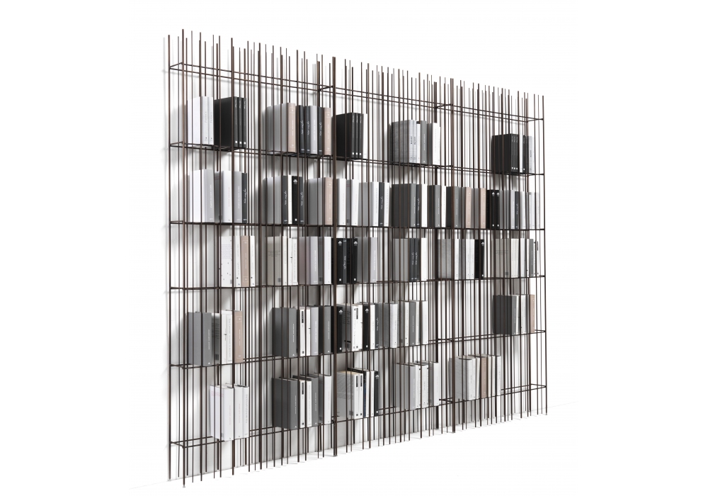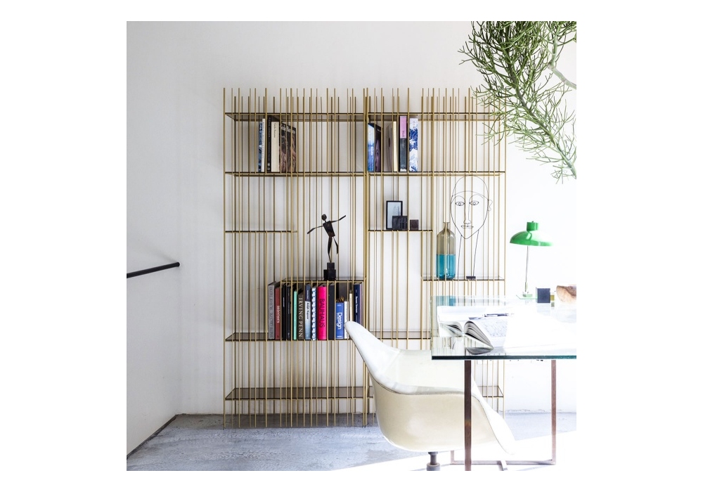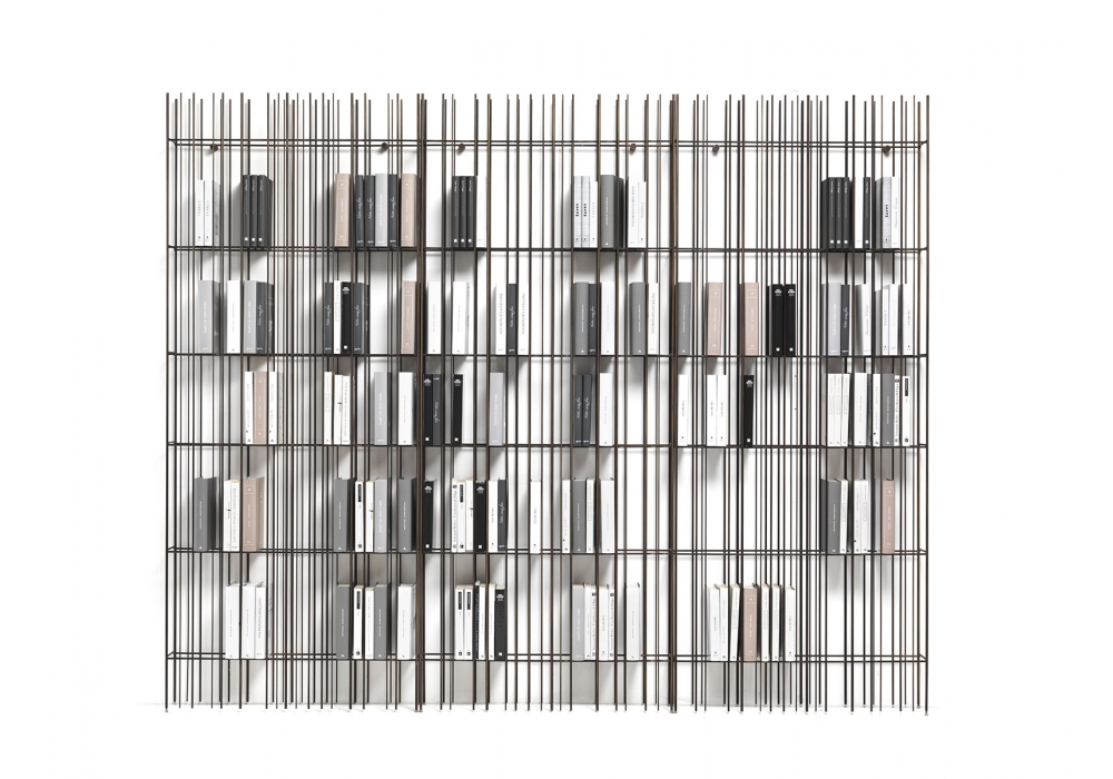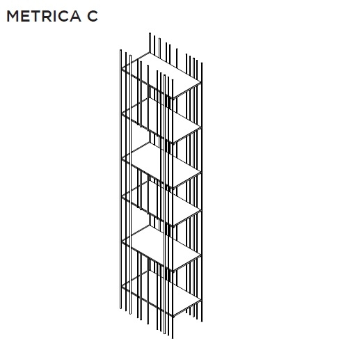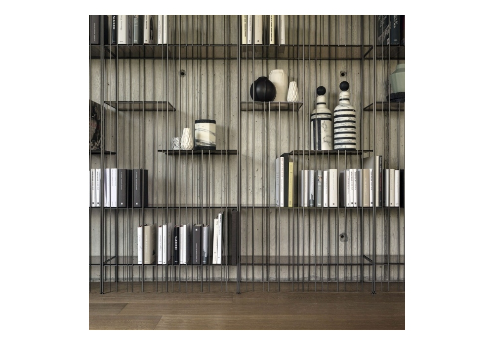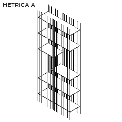 Metrica firmata da Ctrlzak Studio per Mogg è una libreria in metallo disponibile in 4 finiture: brunito, titanio, oro e bianco RAL 1013 e ripiani in cristallo bronzo, verde o bianco acidato extra light. Si consiglia il fissaggio a parete.
