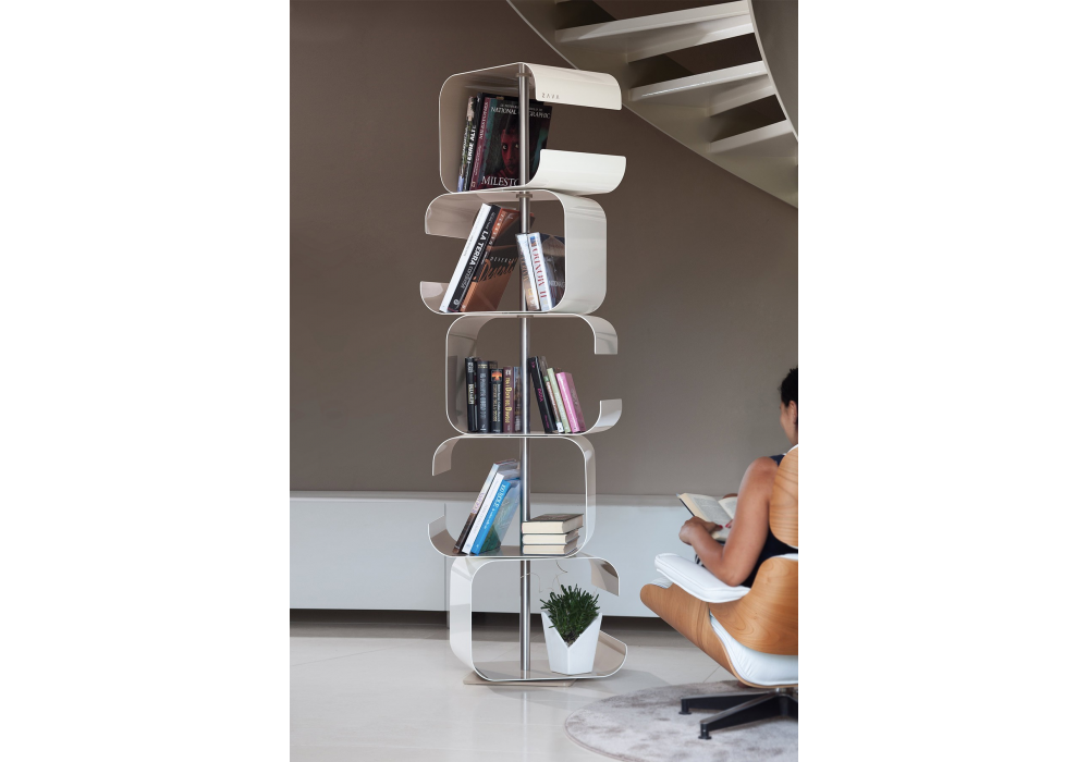 Tico firmata da Franco Zavarise per Zava è una libreria componibile realizzata in alluminio, ferro ed acciaio verniciato opaco. Nella versione big, il tubo centrale di sostegno può essere regolato in base all’altezza della stanza. Disponibile in diverse dimensioni e finiture.
